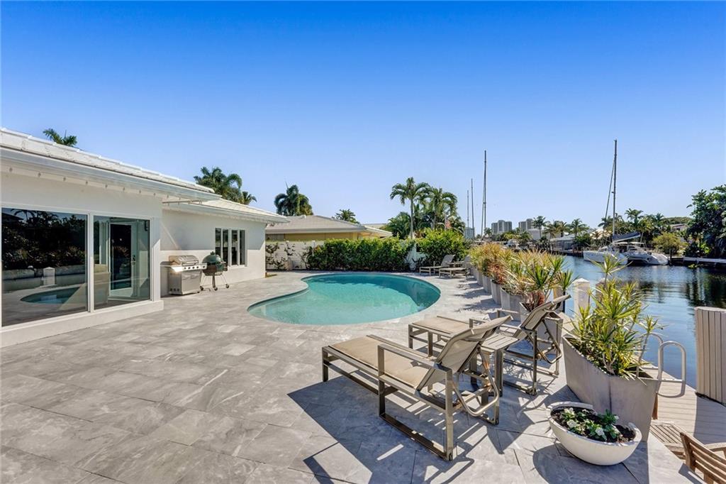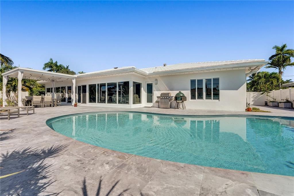 Stunning, modern, waterfront home in Coral Ridge. Situated on 100’ of deep water, no fixed bridges and a 120’ wide canal suitable for larger boats/catamarans. Open floorplan living and dining area with a massive kitchen island equipped with custom cabinets. This home was completely renovated down to the studs in 2014. Some of the updates include a saltwater pool with diamond brite, seawall cap and 80’ composite dock. Hurricane impact windows and doors. 400 amp electrical panel and wiring installed in 2014. All sewer lines were replaced with PVC. New roof and trusses in 2014. New A/C system was installed in 2018 including air handler, condensing unit, ductwork and thermostat. 12,000lb boat lift was installed less than 2 years ago. Bayview School District.