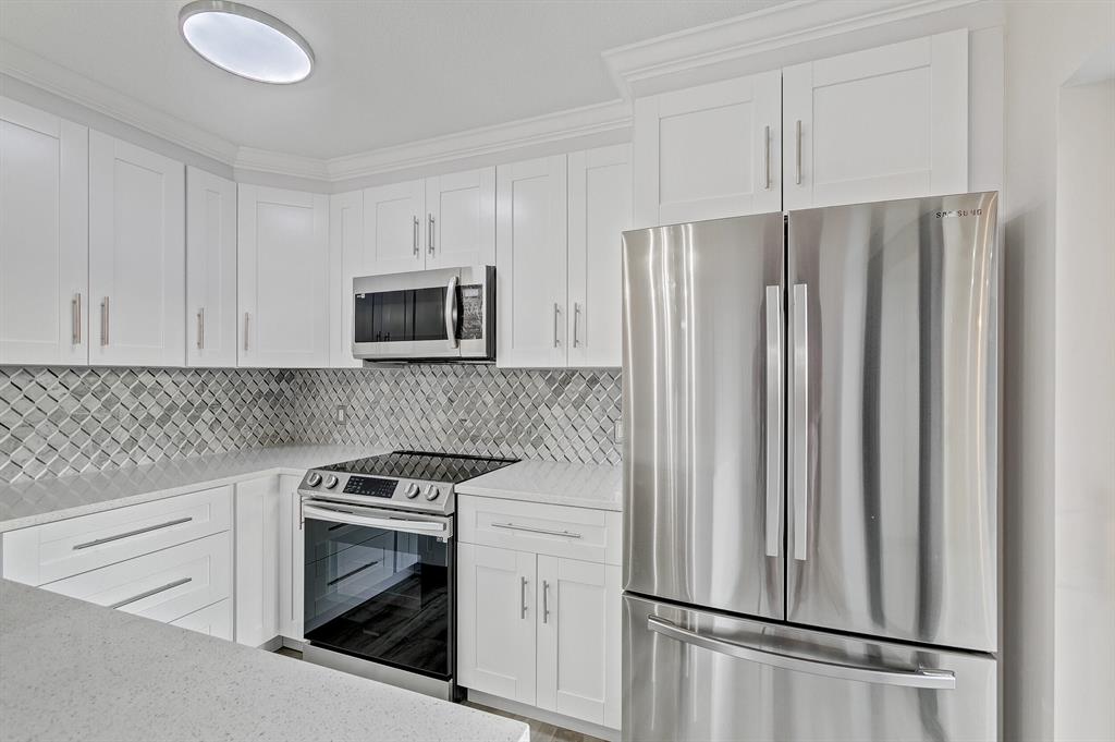 Enjoy South Florida living from this STUNNING WATERFRONT townhome renovated to perfection! Privately tucked away overlooking expansive lake views, this beautifully appointed townhouse has 2 bedrooms, 2.5 baths, over 1,200 SF of living area with new interior paint, textured ceilings (no popcorn), and luxurious vinyl plank flooring. Open and spacious floor plan, perfectly equipped with gourmet kitchen complimented by custom crown molding and soft-close cabinets, sparkling Quartz counter tops, stainless steel appliances, designer backsplash, extended breakfast bar accented by stone tile decorative wall, new faucet, sink, and LED lighting. 1st floor offers spacious living room and dining area, renovated laundry/powder room with new washer and dryer, new vanity, sink, mirrors, and lighting!