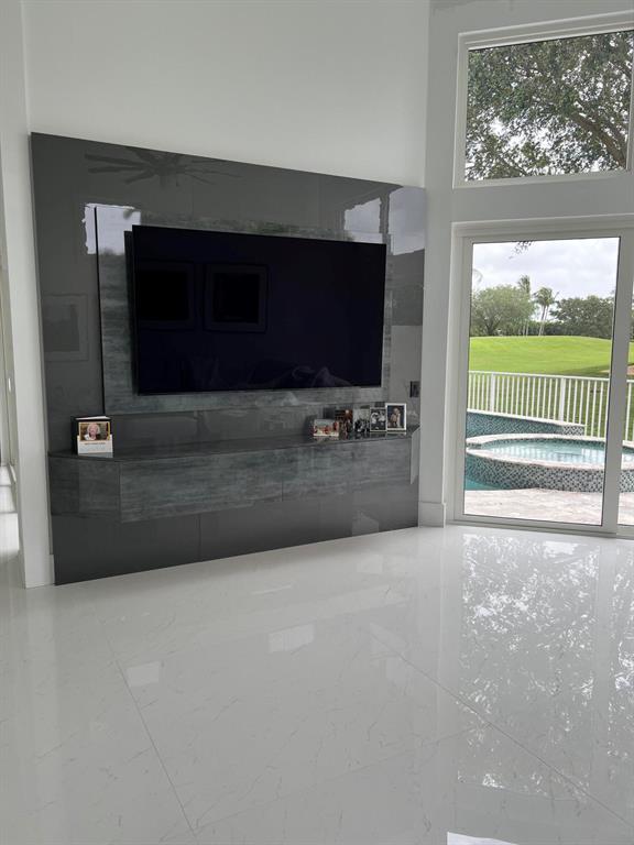 Tranquil golf course vistas fill this remodeled contemporary 1-story of 3 bedrooms + office & 2 1/2 baths. This exquisitely finished home features a wood & glass double door entry;volume ceilings with extra high-hats & crown moldings;beautiful white porcelain tile floors; elegant wall panel craftsmanship; a stunning gourmet island kitchen with white shaker-style cabinetry,Carrera marble countertops,marble backsplash & stainless steel appliances;built-in Family Room entertainment center;a fabulous wet bar with granite counter, stone backsplash & wine refrigerator;beautifully crafted office with built-in cabinetry,desk,Murphy bed & ceiling detail;remodeled contemporary Master & secondary baths;custom window treatment design & an inviting open patio with pool & spa overlooking the golf cours