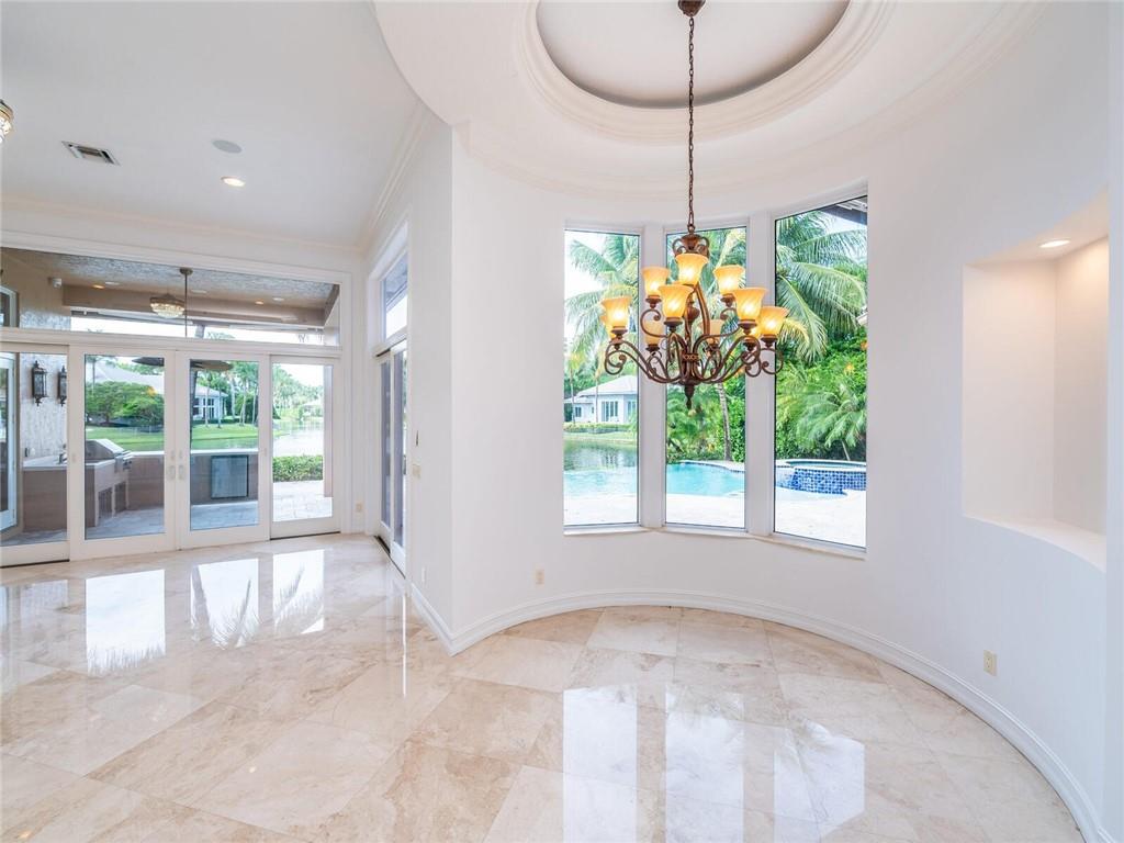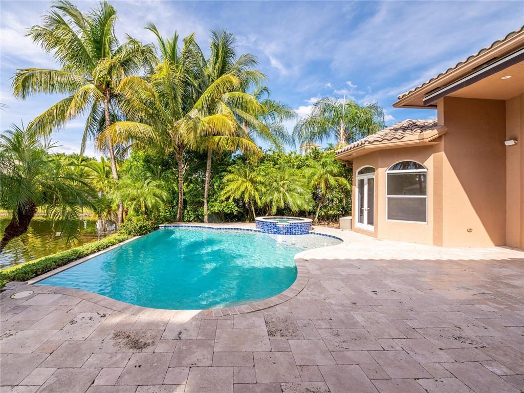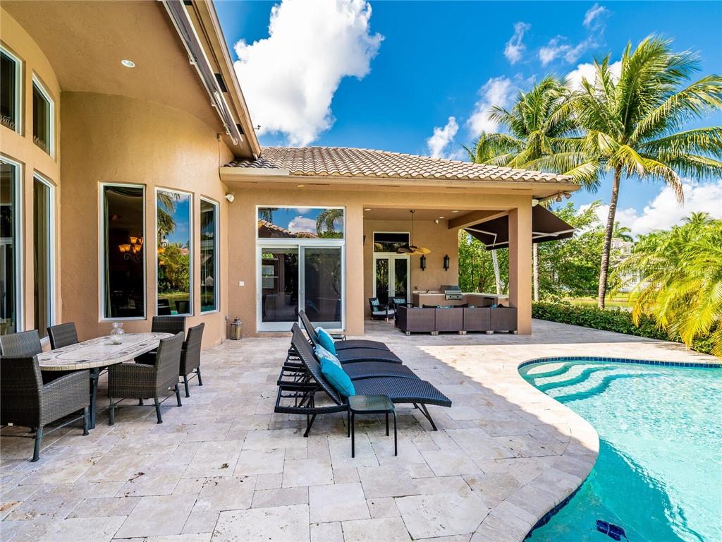 Impeccable, Modern Masterpiece! Upgraded waterfront pool estate in prestigious, gated Hawks Landing. Incredibly maintained custom 6 BR/6.5 BA ensuite +office w/built-ins + loft. Enjoy relaxing sunsets from your covered lanai overlooking oversized heated infinity pool w/spa while a waterfall fountain cascades the spectacular expansive lake. BBQ from your summer kitchen amid lush, private landscaping. Opulence abounds w/ regal entry, formal dining, custom millwork & lighting, Italian marble, gourmet kitchen w/GE Monogram appl., dbl oven, island, Thermador, Bosch dishwasher, granite & wood cabinetry. Primary BR suite w/ walk-in closets, dual vanities, soaking tub & shower. 3-Zone AC, laundry room, butler’s pantry, & coffered ceilings, & maids quarters... Close to American Heritage School.