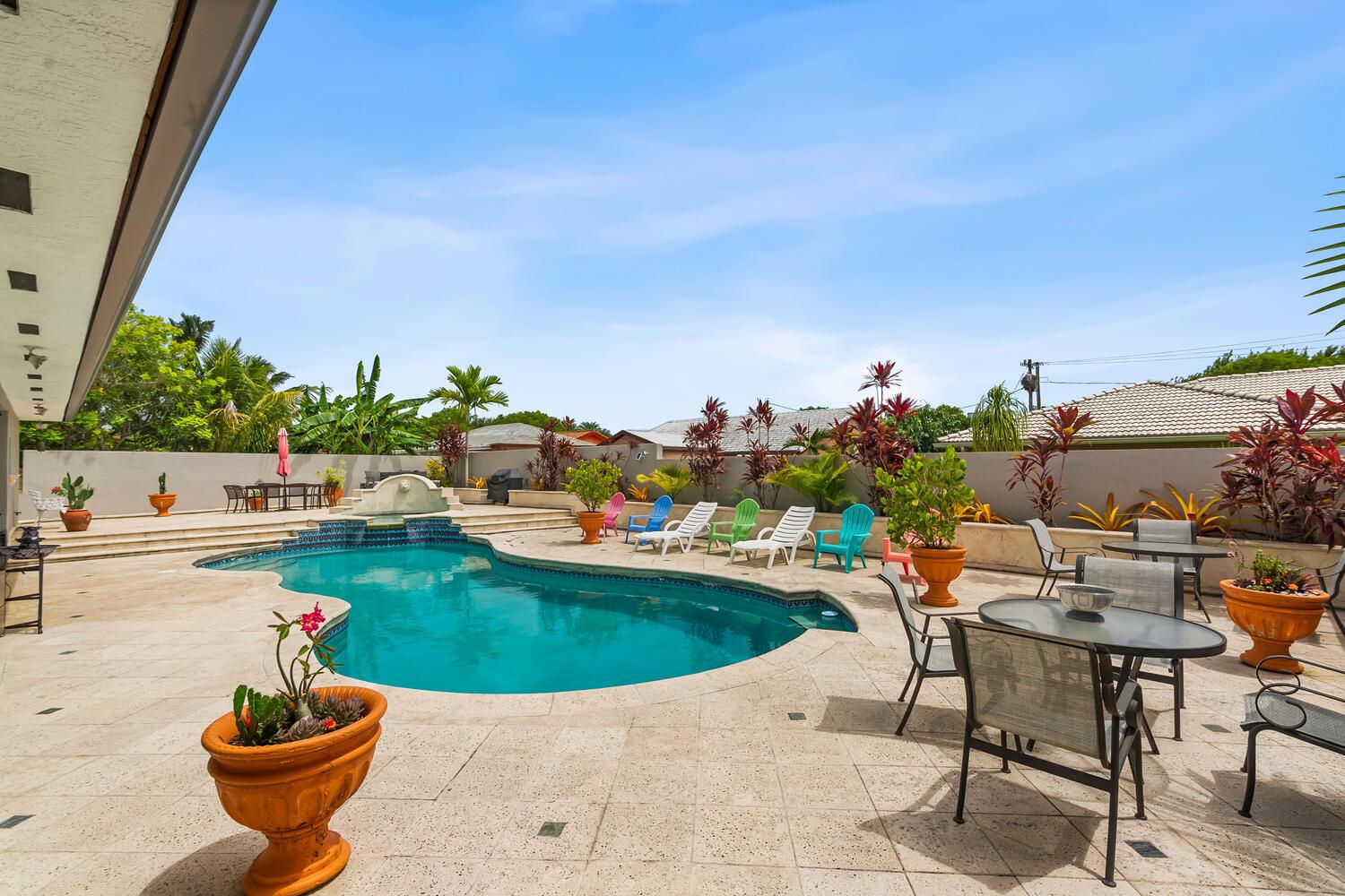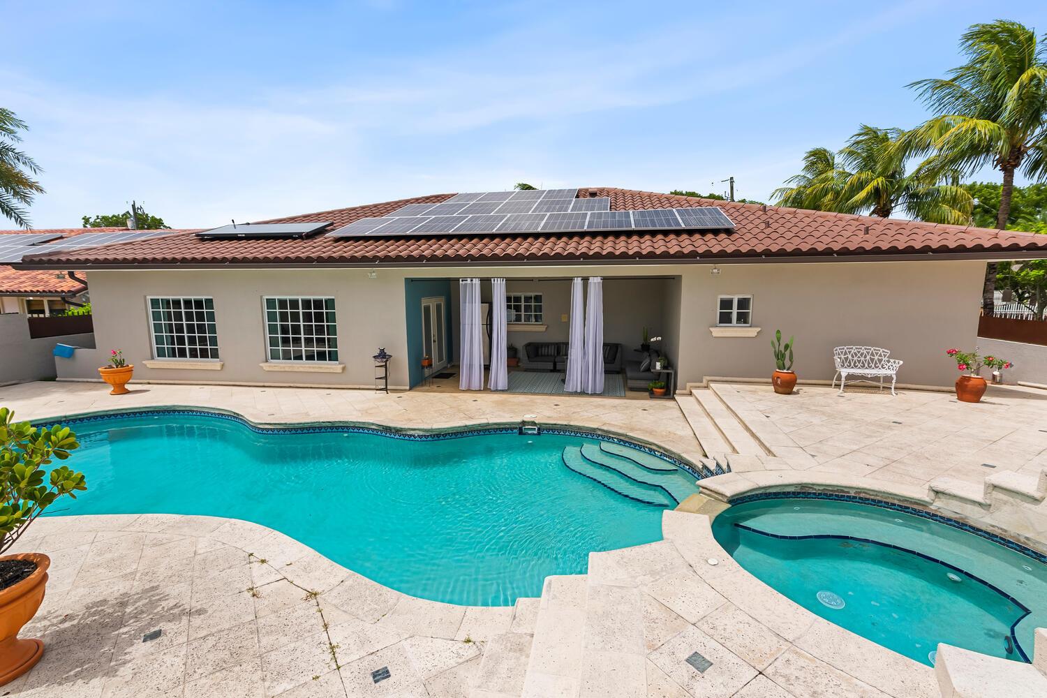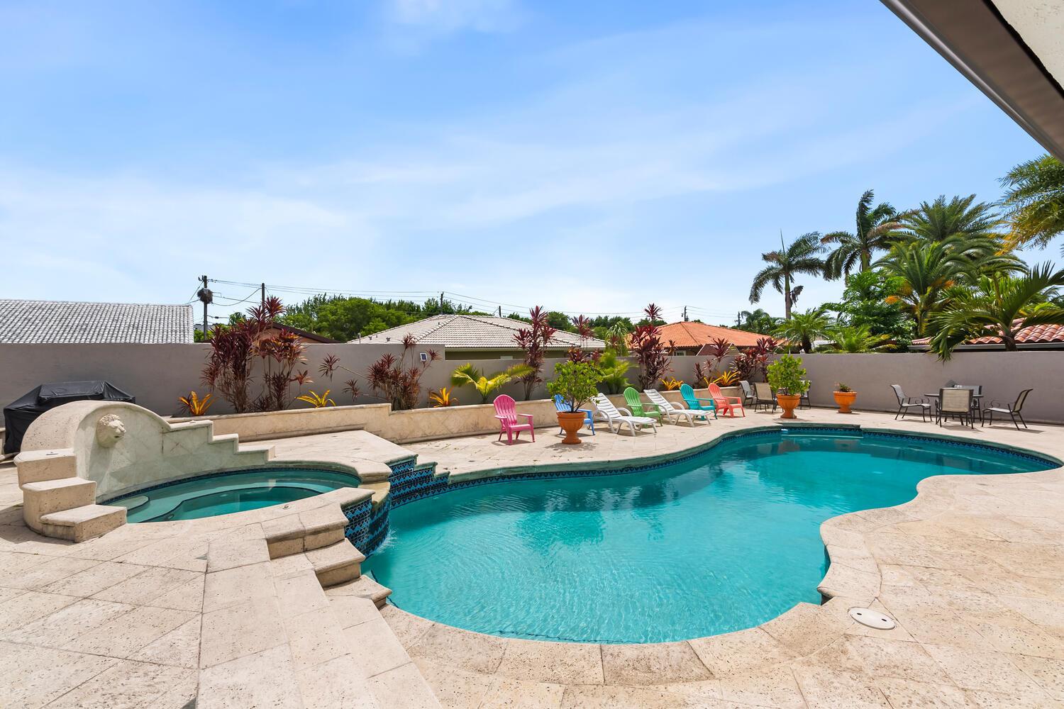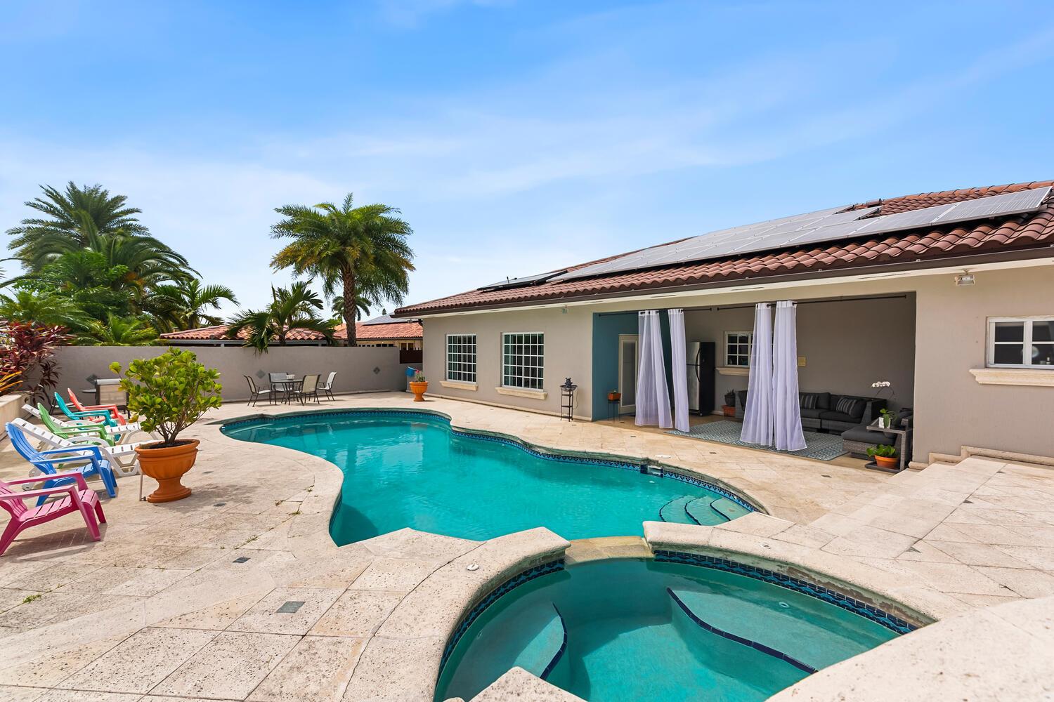 Gorgeous 4 bedroom 3 bathroom pool home in Vanderbilt - one of Doral's most desirable neighborhoods without an HOA. The home has an amazing backyard oasis with a massive pool and spa. Features include volume ceilings, separate living and family rooms, spacious chef's kitchen with plenty of storage, and a grand master suite with a separate shower and spa tub. There is a guest suite with a private entrance which could be used as an in-law suite. There are walk-in closets in all of the bedrooms, a new roof was installed in 2019, new A/C in 2021, new water heater, solar panels for electricity lowering the bill to $30/month, freshly painted exterior and concrete fenced property lines with a gated circular driveway. Owner Financing available, request a showing today!