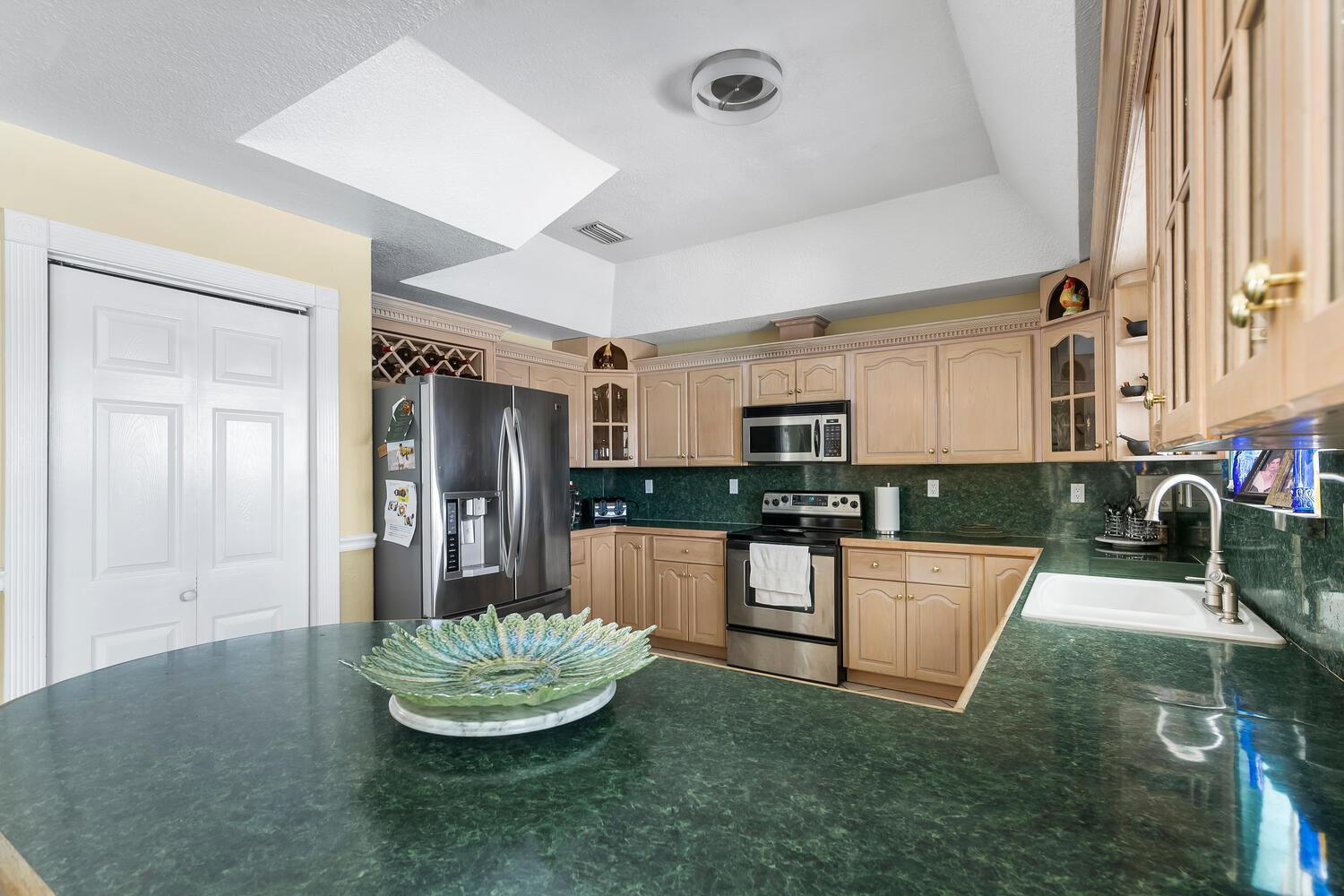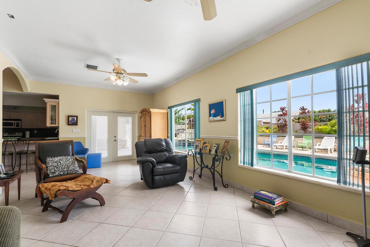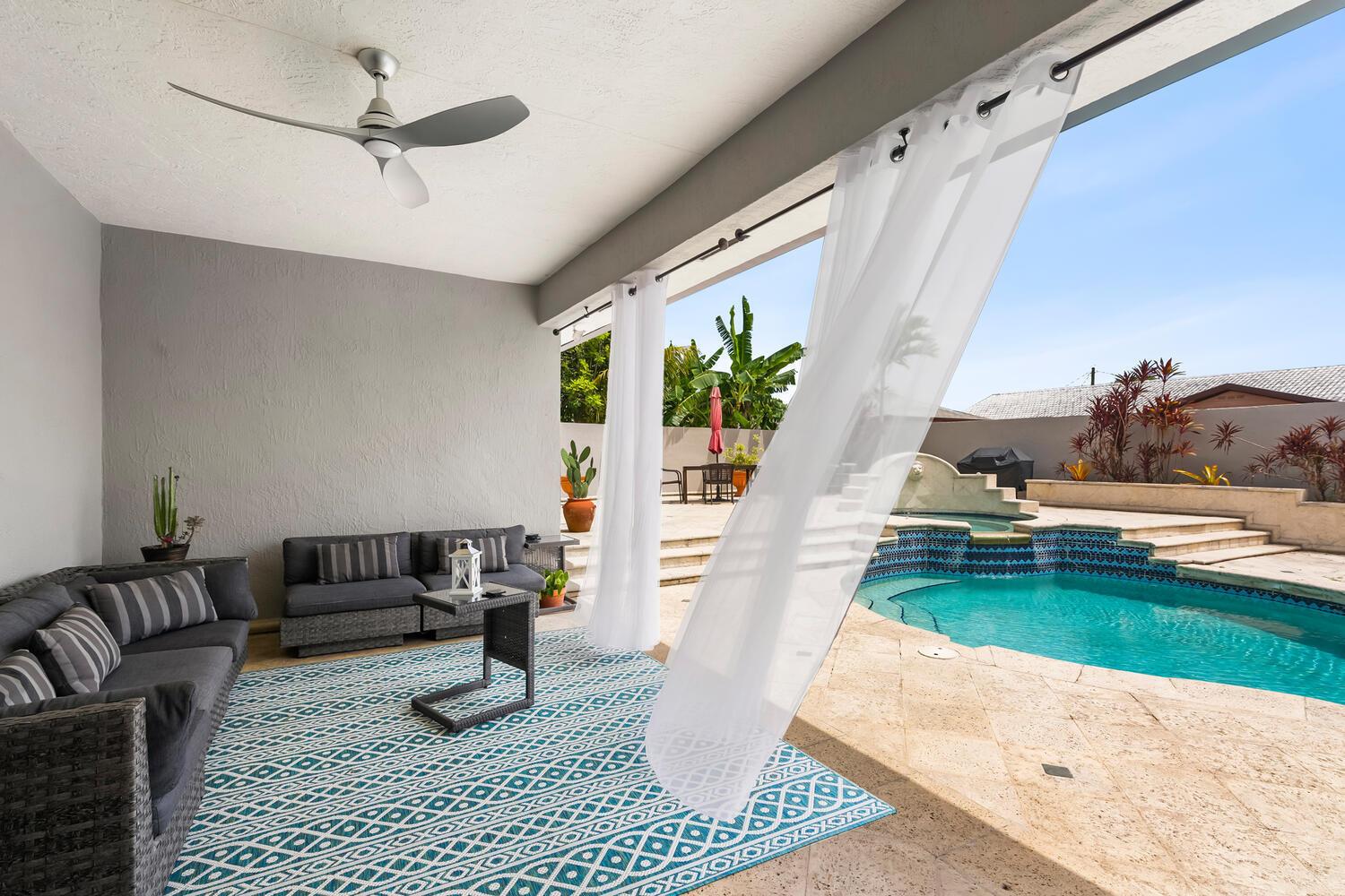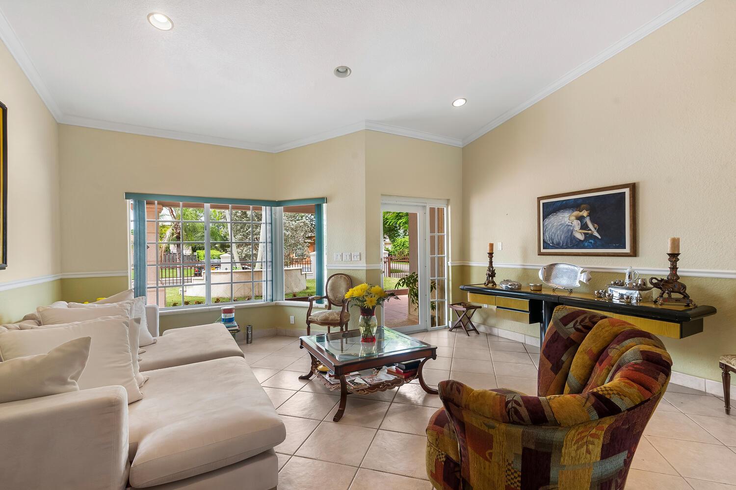 Gorgeous 4 bedroom 3 bathroom pool home in Vanderbilt - one of Doral's most desirable neighborhoods without an HOA. The home has an amazing backyard oasis with a massive pool and spa. Features include volume ceilings, separate living and family rooms, spacious chef's kitchen with plenty of storage, and a grand master suite with a separate shower and spa tub. There is a guest suite with a private entrance which could be used as an in-law suite. There are walk-in closets in all of the bedrooms, a new roof was installed in 2019, new A/C in 2021, new water heater, solar panels for electricity lowering the bill to $30/month, freshly painted exterior and concrete fenced property lines with a gated circular driveway. Owner Financing available, request a showing today!