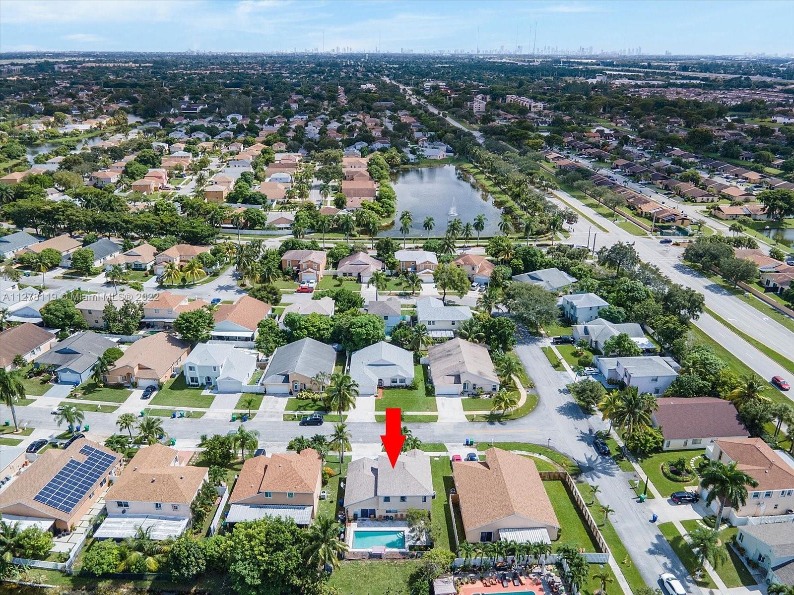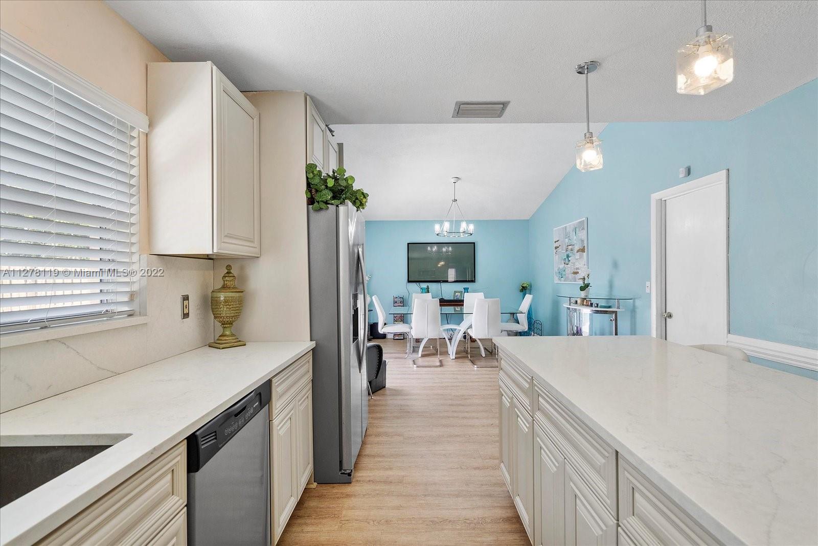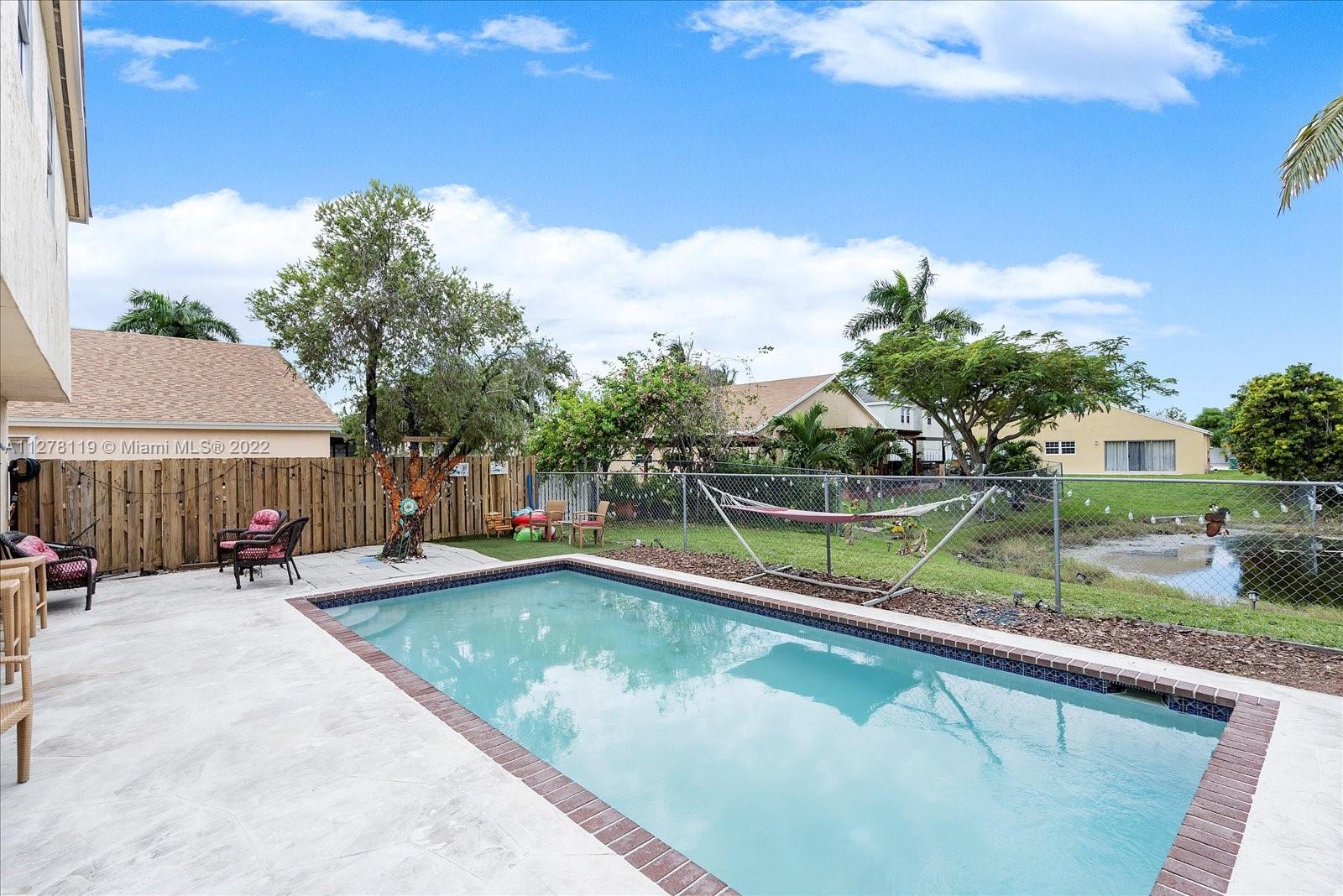 This 4 bedroom / 2.5 baths / 2 car garage with a magnificent pool is ready for you to move in! The large updated kitchen is open to the family room and has quartz counters, wood cabinets, and spacious island. Other updates include tile and laminate flooring and freshly painted rooms. You will surely be able to entertain or just relax in the quiet backyard with a large inground pool and a view of the lake. This sought after community of River Run is convenient to shops, schools, parks, close to major highways, City Hall, and minutes to the beach, Hard Rock hotel and stadium!