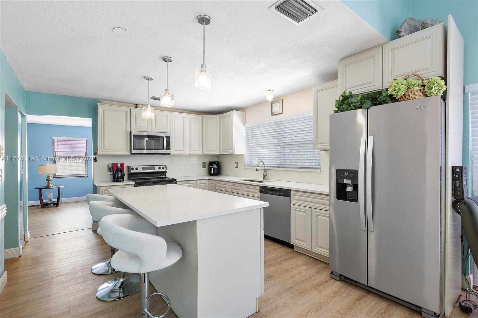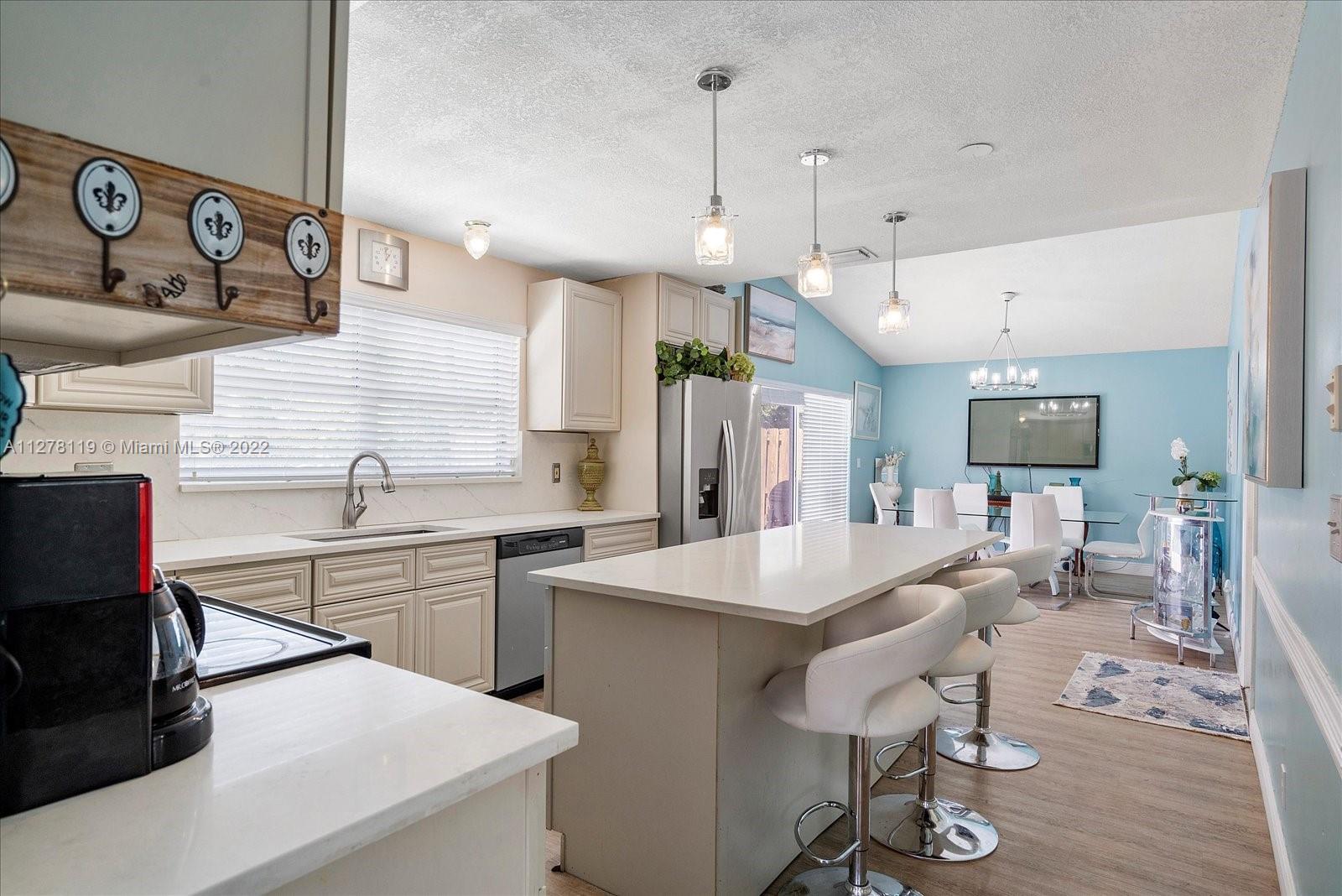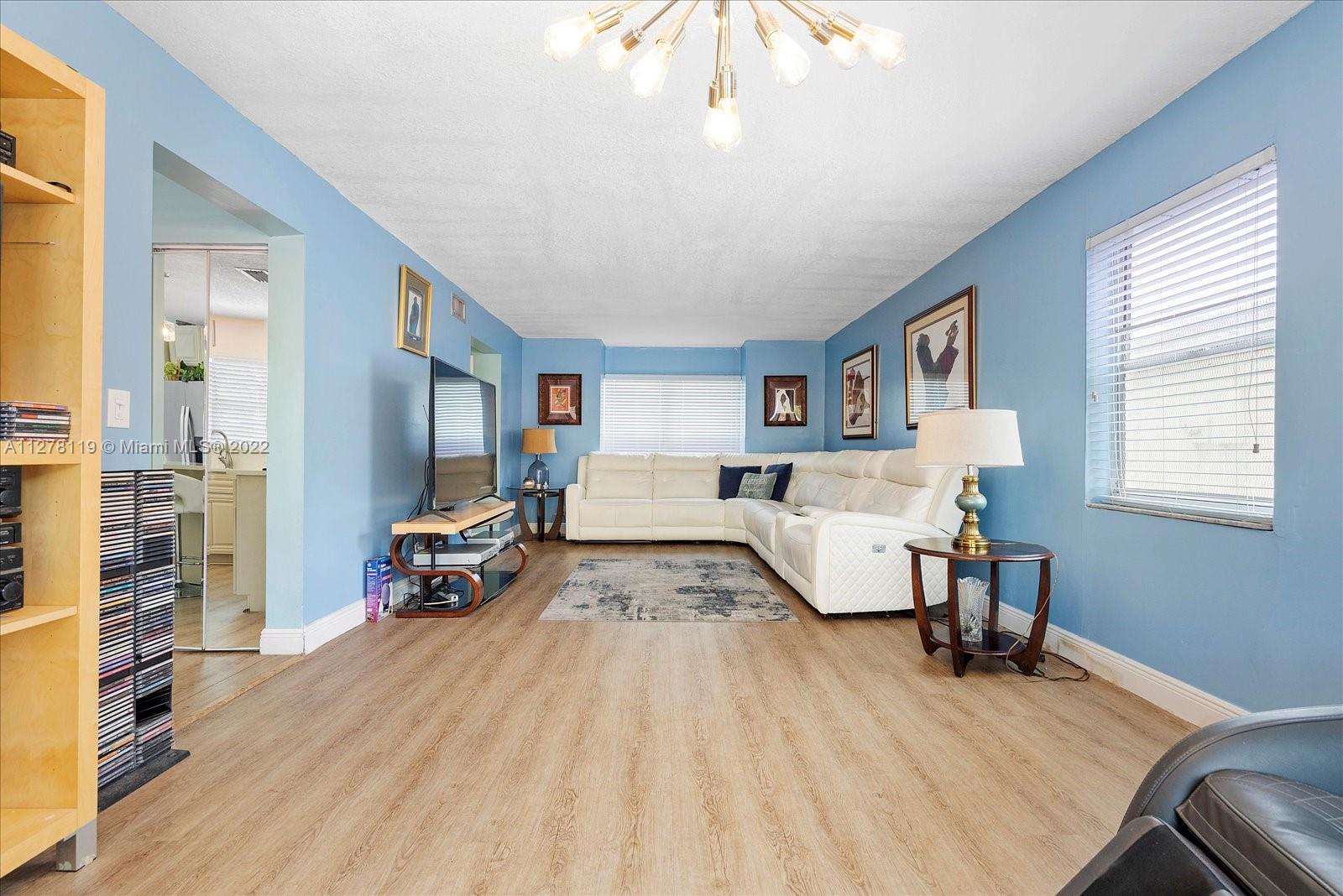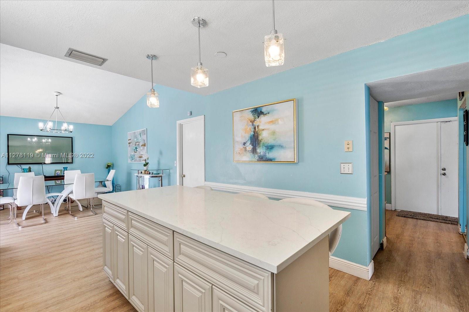 This 4 bedroom / 2.5 baths / 2 car garage with a magnificent pool is ready for you to move in! The large updated kitchen is open to the family room and has quartz counters, wood cabinets, and spacious island. Other updates include tile and laminate flooring and freshly painted rooms. You will surely be able to entertain or just relax in the quiet backyard with a large inground pool and a view of the lake. This sought after community of River Run is convenient to shops, schools, parks, close to major highways, City Hall, and minutes to the beach, Hard Rock hotel and stadium!