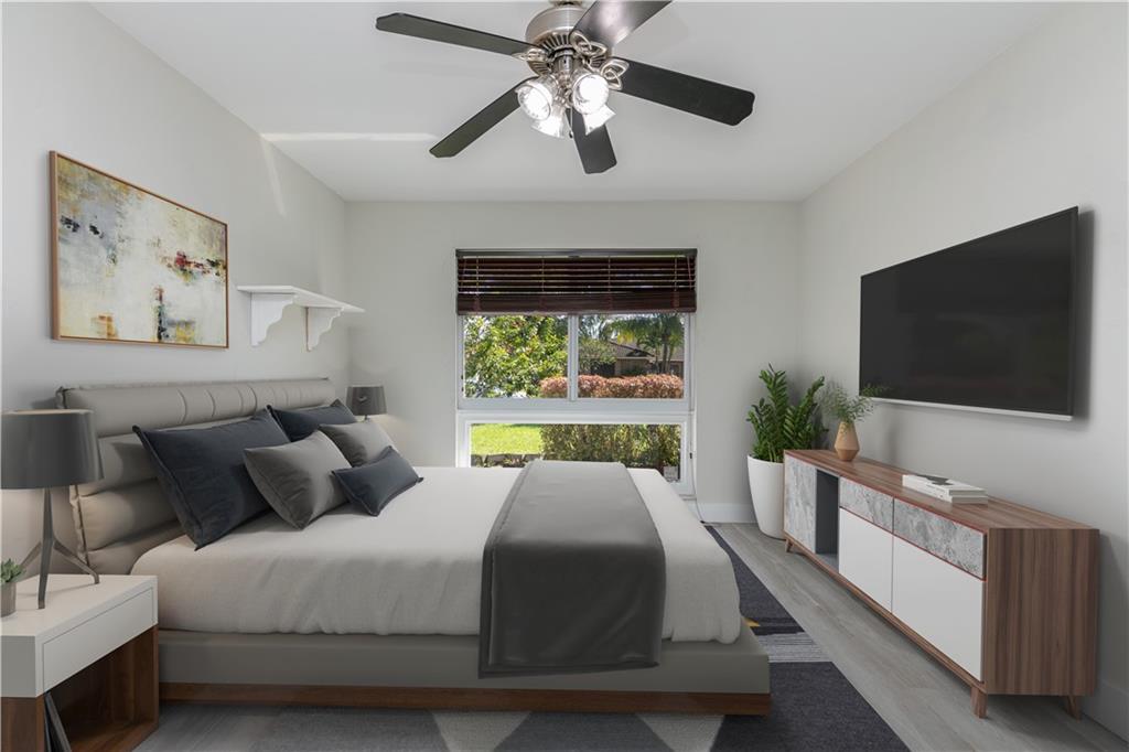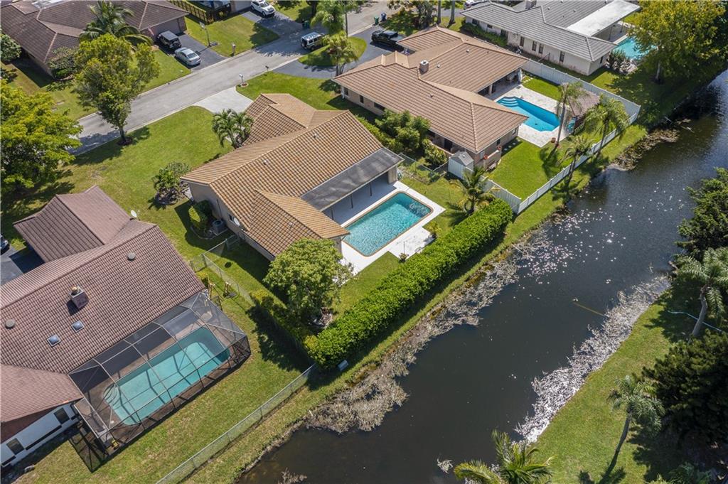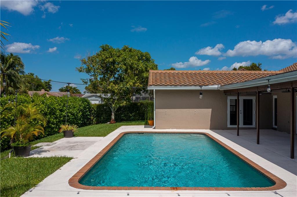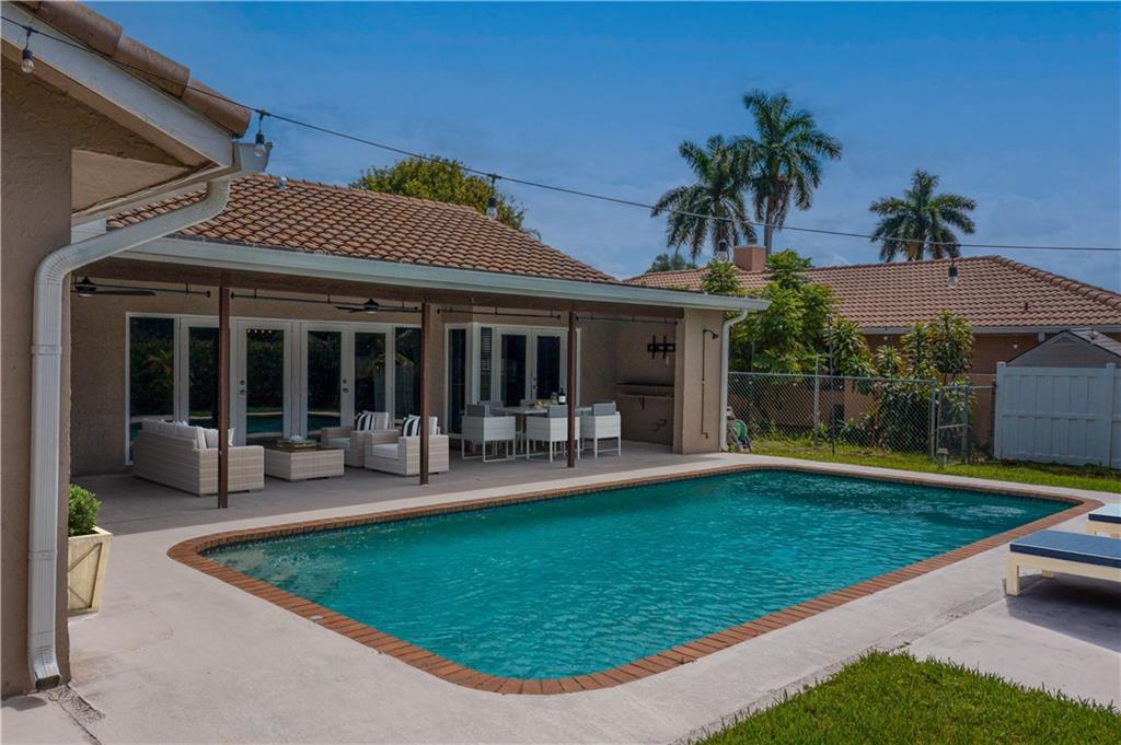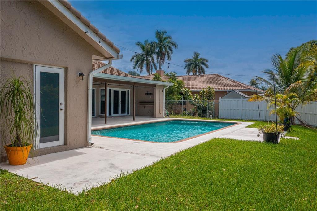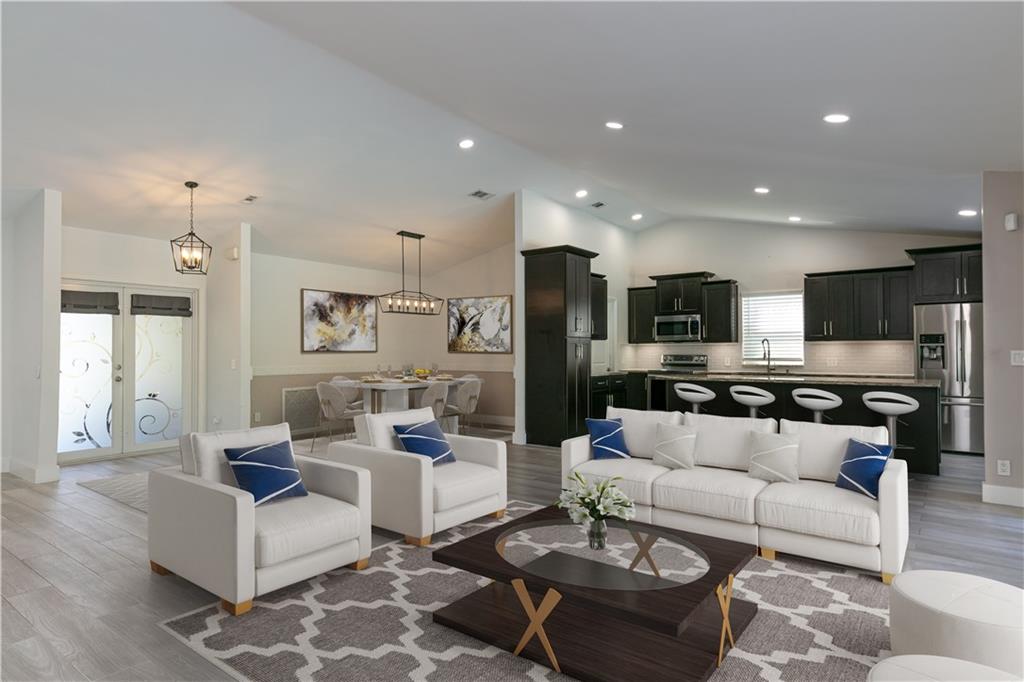 MOVE RIGHT IN, EVERYTHING HAS BEEN DONE FOR YOU! Open floor plan & gorgeous kitchen w/ a 9' island make this a great entertaining space. Separate living room can easily be converted to your home office / 4th bedroom. Insurance concerns? This home has a 2019 roof & IMPACT windows / doors. Porcelain wood look plank flooring throughout, kitchen updated w/ Procraft wood cabinetry w/ soft close doors/drawers, lg. center island, granite countertops, glass tile backsplash, farmhouse style sink & Samsung stainless steel appliances. Other great features include multiple sets of IMPACT French doors all w/ access to the patio/pool, both bathrooms fully updated, fenced 1/4 acre lot, covered patio, salt chlorinated pool, water heater '21, new garage door opener & sprinklers that run off canal & NO HOA.
