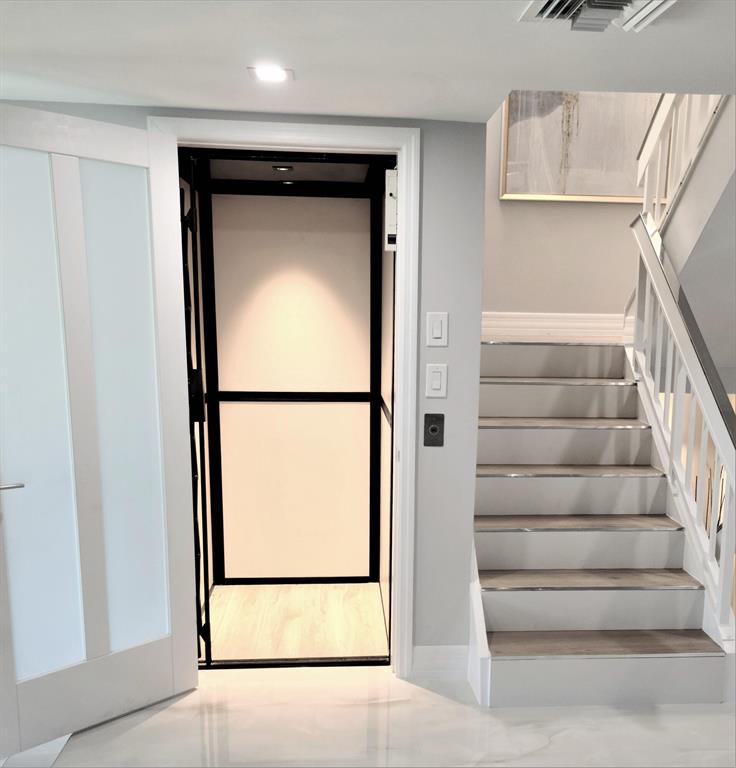• Característica Interior:Attic, WetBar, BuiltinFeatures, BreakfastArea, ClosetCabinetry, EntranceFoyer, EatinKitchen, Elevator, GardenTubRomanTub, LivingDiningRoom, CustomMirrors, Pantry, PullDownAtticStairs, Skylights, Bar, WalkInClosets