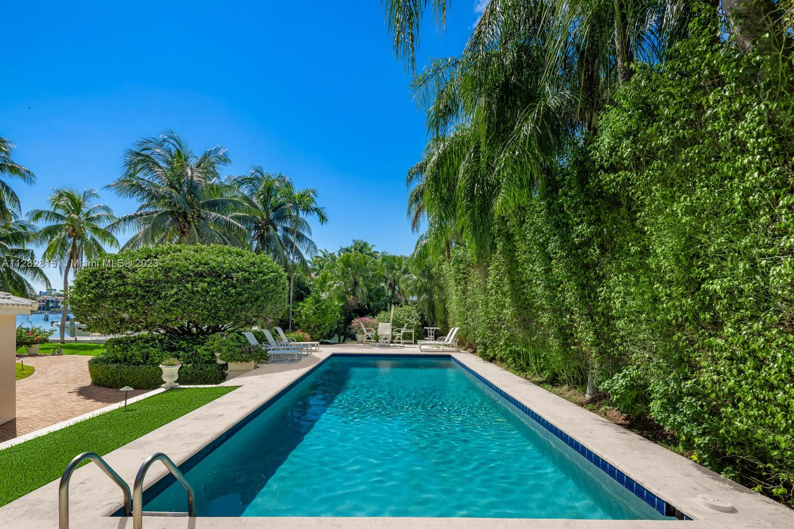 From the moment of arrival, a balance between grandiose architectural elements and thoughtful, understated details set the tone for this magnificent, waterfront Estate. Nestled on an almost 30,000 SF, pie shaped lot and located in the exclusive and gated Sunset Islands, this home is the epitome of luxury living. Enjoy 5,413 SF of living area including 5 beds, 7/1 baths, an office, grand room and stunning oak wood bar. Transform this sanctuary into your personal paradise. Outdoor balconies, oversize terrace, lap pool, manicured lawns and almost 200’ of water frontage with direct ocean access provide for majestic living indoors or out. Enjoy the private side of Miami Beach while still being steps away from world class dining, shopping and entertainment.