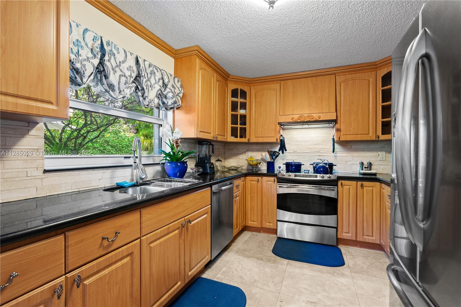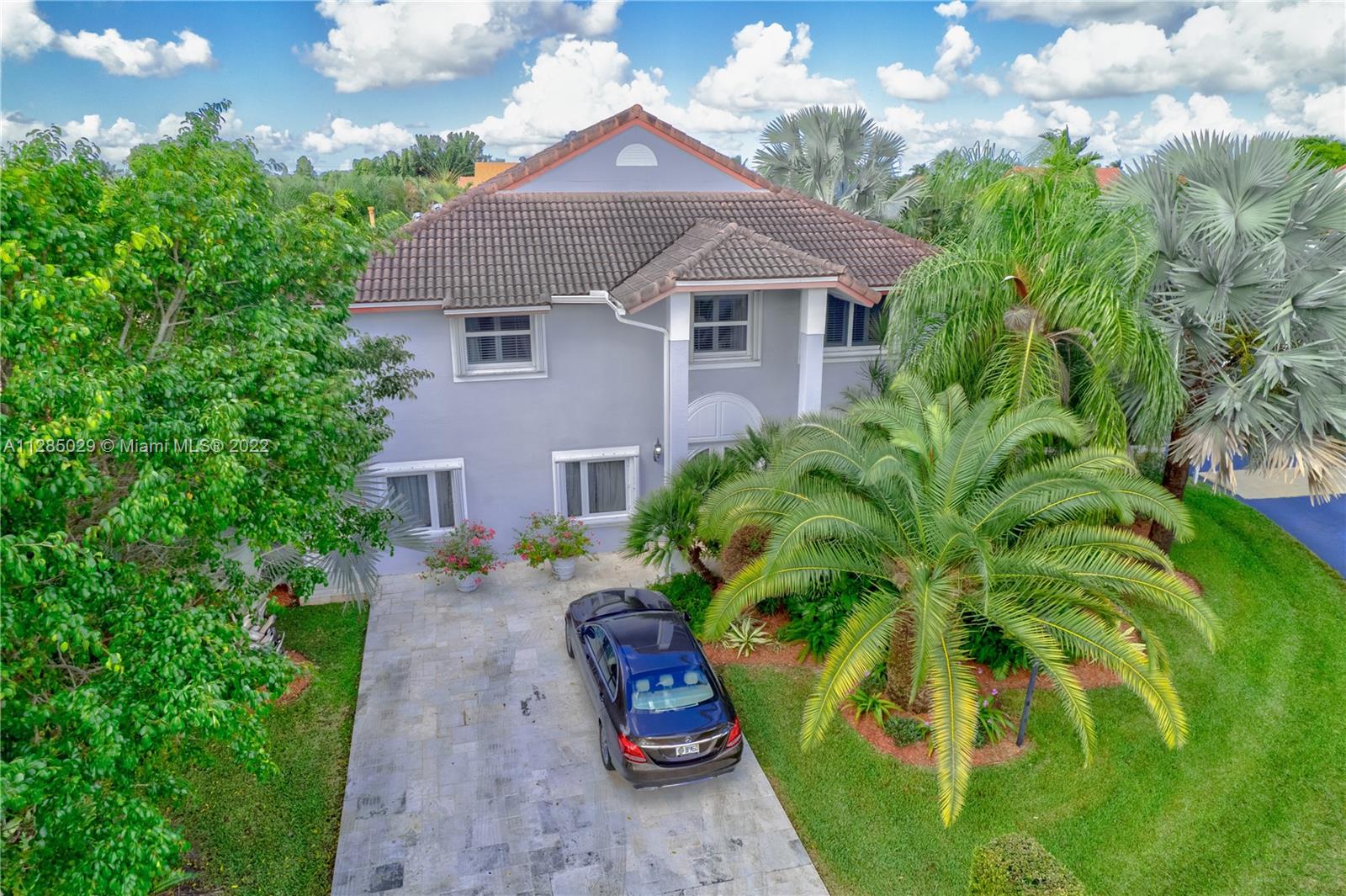Gorgeous , elegant corner lot home with marble floors, an additional bedroom and full bath on the first floor, upstairs you have beautiful cherrywood floorings, a principal suite ,beautifully updated bathroom and a huge walk-in closet, 2 additional spacious bedrooms and an unbelievable full size laundry room . Impact windows and doors, a family room looking out to the tropical backyard surrounding this home. Sit outside and enjoy nature with complete privacy. A driveway that fits 4 cars. This residence has been kept in excellent condition.