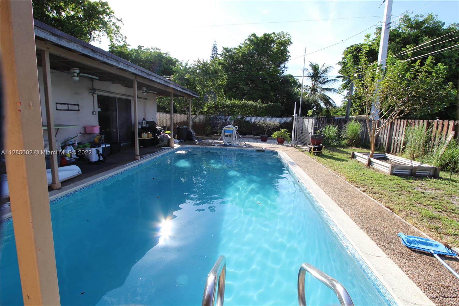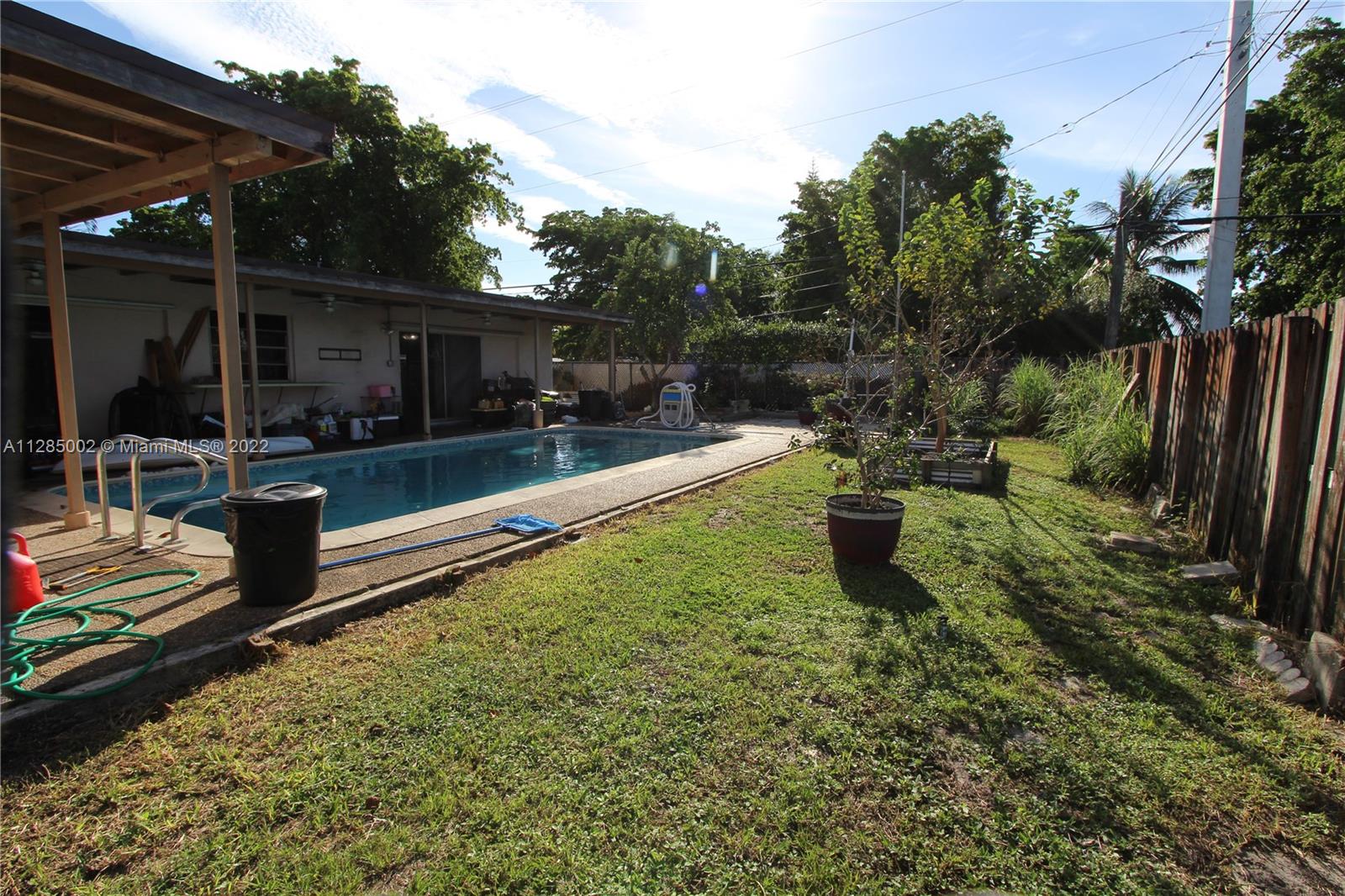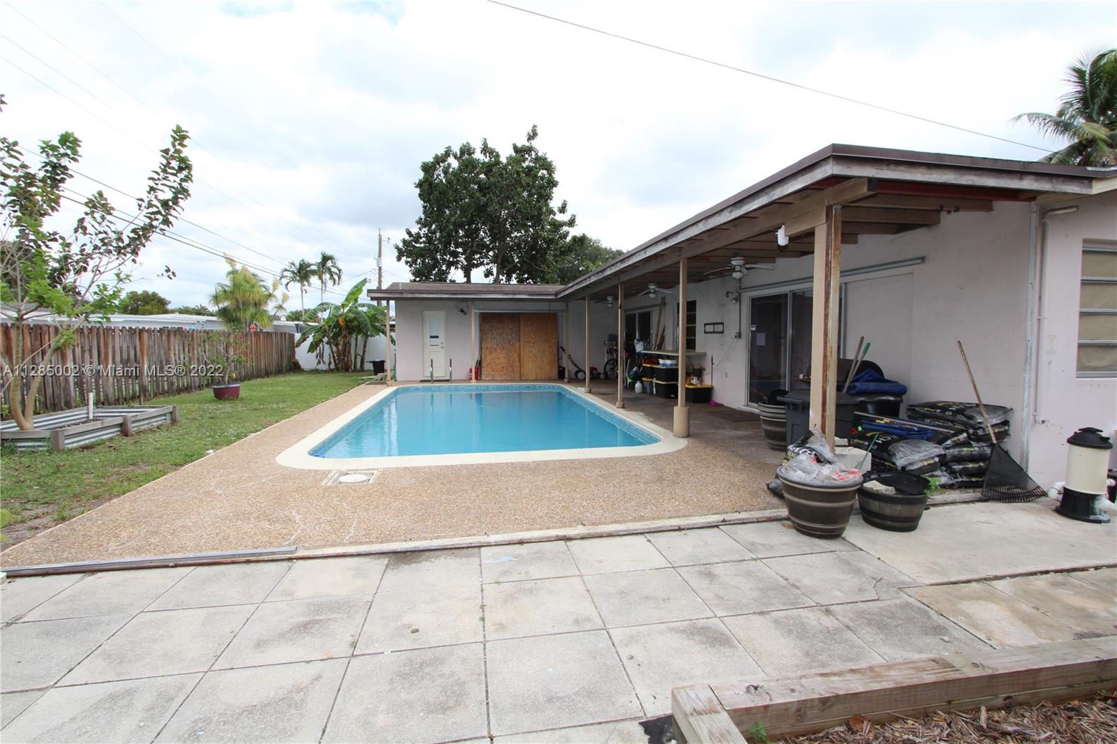 Don't miss this one! 3 bed, 2 bath on a large corner lot on a dead end road. Pre-school, Elementary, and high school all within walking distance. 3 bedrooms with lots of natural lighting and 2 full baths. Large living room adjacent to the formal dining room. kitchen with lots of cabinets with a pass through window to the pool deck and a den. Large outdoor living space with a full size pool and a 2 car garage that has lots of built in storage. 24x24 tile throughout. Master bedroom has sliding doors to step right out to the pool deck and an entrance door right into the master bathroom to keep from tracking water through the house. Mango tree, everbearing mulberry tree, 2 different types of guava trees, avocado tree, banana trees, and a star fruit tree. Assumable FHA Loan, $251,000 to assume