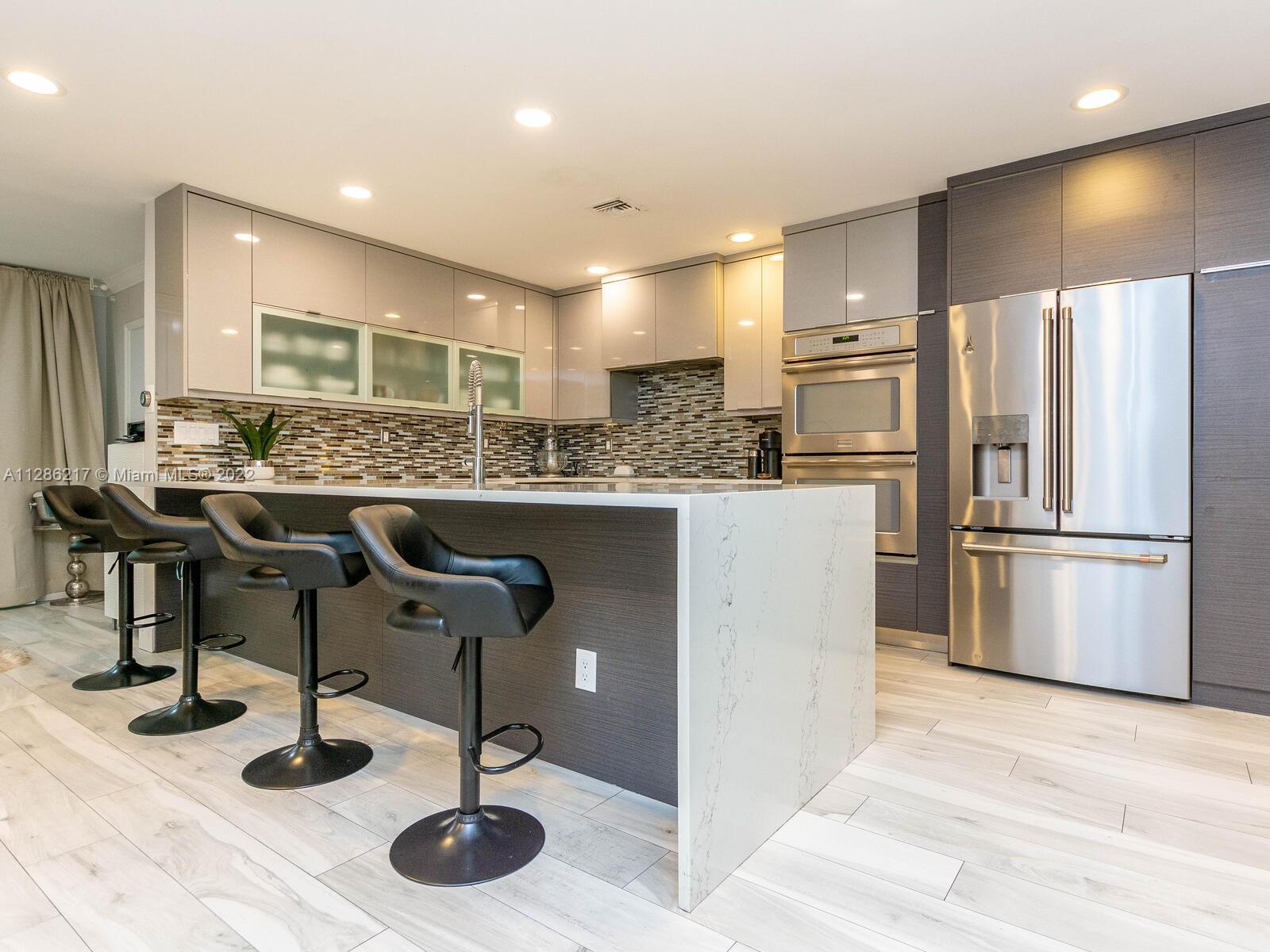 Enjoy this majestic fully renovated townhome with open-concept floorplan and updated fixtures and finishes throughout. Including a custom made professional kithchen with top of the line stainless steel appliances and quartz counter tops with massive island for casual dining seated, design 3 full bathrooms, luxury porcelain tile in the ground floor and laminate flooring uptairs, tankless Titan wather heater, impact windows for added storm protection. Outdoor spaces include pergola-covered front terrace and back terrace fenced with big shed for storage. Pet-friendly community features clubhouse, pool, basketball and tennis courts, playspace for kids. Walking distance from temples, dining, shopping plazas and recreation. Close to Hard Rock Hotel and Fort Lauderdale International Airport.