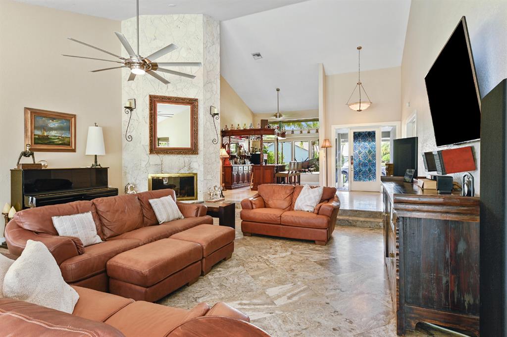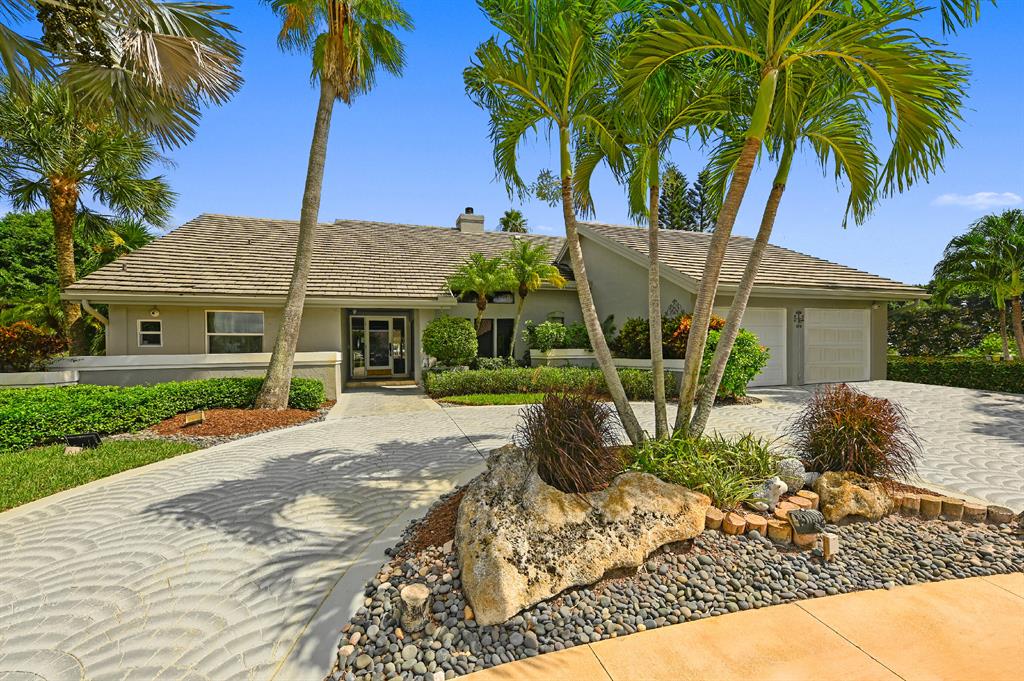 Second LARGEST LOT in Boca Woods. Beautiful 3BR, 2.5BA POOL home located on cul de sac with Lake and Golf Course View. Open floor plan. BRAND NEW kitchen with quartz counter tops, white cabinetry, subway tile, SS Appliances. Marble & Travertine in main living area. Primary Bathroom remodeled 3yrs ago. Second and half bath recently remodeled. New baseboards, interior doors, fans replaced 3yrs ago, interior painted 3 yrs & exterior 4yrs ago. Electrical Panel 2 yrs, AC 2 yrs, Hot Water less than 5 yrs, pool heater 2 yrs, fenced in dog yard with Astro Turf 2 yrs. Separate dining area, fireplace, and split bedrooms. Pool area has large patio and screen enclosure. Glass slider doors are impact and garage door Hurricane rated. Club equity is $95K.