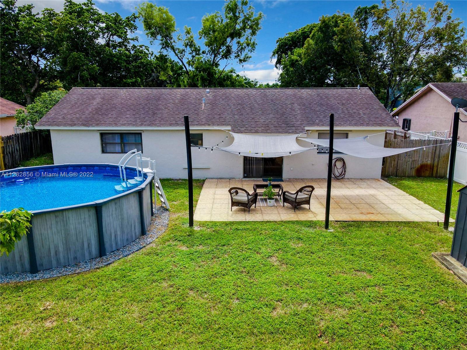 NO HOA!!1249 ADJ SQFT PER TAX RECORDS/ Built 1983/ Lot 7003 SF/ Single Family Home 3/2 + Converted garage with independent door used as entertainment room that can be a 4th bedroom, office or inlaw suite. Smart AC, door lock and ringer. Featuring an open concept layout w/ tile and laminate floor. Spacious living areas and large kitchen. Offering amazing outdoor living space with huge patio, sparkling above ground pool and large fenced yard. Outdoor shed for additional storage. Hurricane panels. Big yard space to park your Boat or RV. This house is centrally located in the heart of Pembroke Pines, IMMEDIATE ACCESS TO MAJOR ROADS (I-95/Turnpike), HOSPITALS, RESTAURANTS, MALLS, Beach, west of Broward Community College; North Perry Airport!! Successful AirBNB.