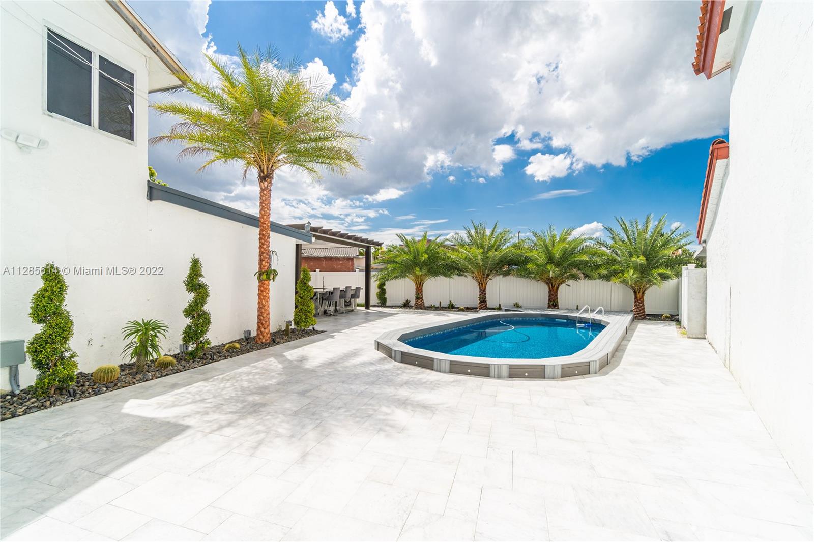 You don't want to miss this completely remodeled 3/2.5 one of a kind Gem, with over $300,000 in upgrades! This home is ready for a family to enjoy the extras, like the large outdoor area that includes a Pergola, Exterior Granite kitchen with a build-in Grill next to a Gorgeous Pool. You will also find hurricane impact windows with the highest rating throughout the whole home, and a new kitchen that has never been used and ready for some new recipes! Large master bedroom with high ceilings, a luxurious large master bathroom, porcelain Tiles throughout the entire home, Marble stairs with glass, This is a must see home! Motivated seller