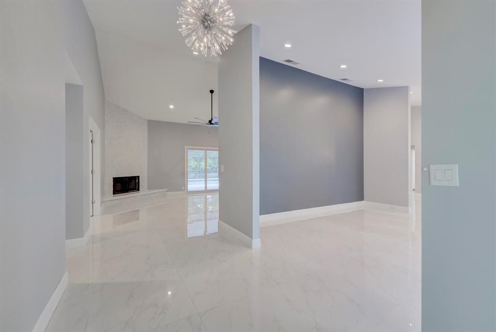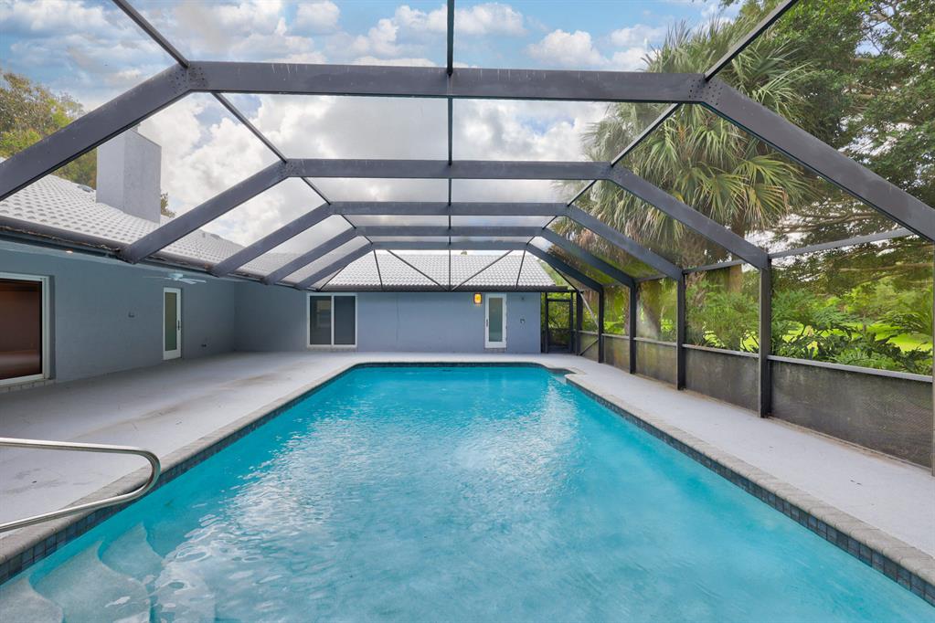 Contemporary Ranch on an acre lot in Cypress Head complete with impact glass windows! Updated and redone with 4 bedrooms, den and 3.1 baths. Cabana baths from the master suite and from the guest room. 3-car garage. Very open and spacious with an impressive backyard featuring a large fully screened salt water heated pool plus an outdoor shower! Mature trees complete the ambiance and true Florida feeling. Porcelain flooring in living areas. Beautiful wood burning fireplace. Newer kitchen with SS appliances, soft closing cabinety and quartz counters. Custom light fixtures, upgraded ceiling fans, recirculating heating systerm & fully outfitted closets, The clubhouse offers tennis and fitness.