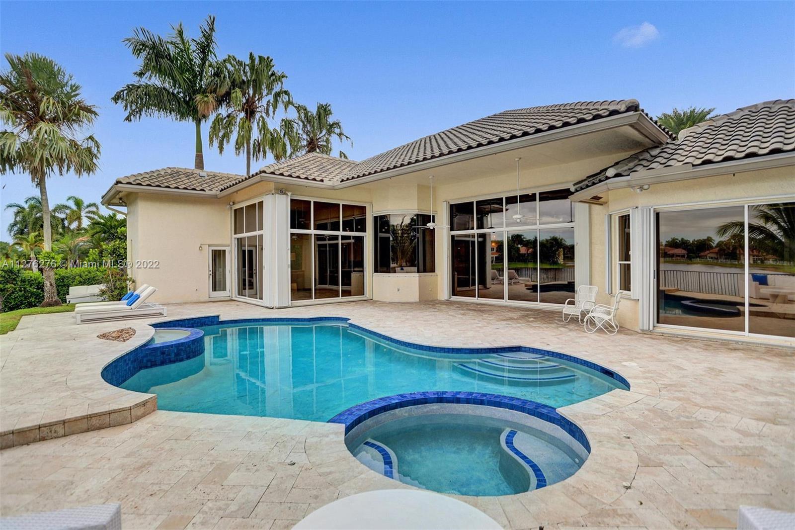 The one you have been waiting for in Weston Hills CC with spectacular lake and sunset views and nearly $300,000 in upgrades! With 5 bedrooms, 5 bathrooms and a nearly 1,000 square foot travertine pool deck, this home is the ultimate in indoor/outdoor living. Featuring a gourmet kitchen with a marble center island, wine cellar and separate bar area, and an infinity-like heated pool and spa, it is also a home that was designed for entertaining. Other wellness features include a steam shower. The owner’s suite features his and hers custom closets and a luxurious spa-like white marble bathroom. The executive home office includes hardwood floors and custom built-in shelves. Other upgrades include marble floors, accordion shutters and a new roof. Please see attached for a full upgrade sheet.