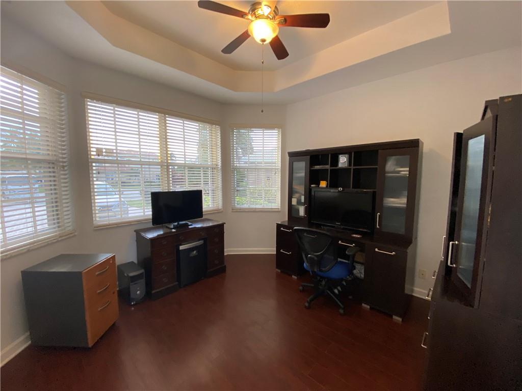 Grand Isle - the Premier Guard Gated Community in all of Wyndham Lakes. Highly desired school district. Phenomenal .38 acre lakefront, cul-de-sac lot. Immaculate and well maintained, rarely offered Martinique model w/6 Bdrms, 4.5 baths plus Office. 4052 AC sq ft w/ a 20'x20' rec room addition. Impressive curb appeal with side entry 3 car garage. Huge paver driveway. 27' covered patio with outdoor kitchen. Large pool & separate in-ground jacuzzi. Fenced yard. 3-zone A/C, one unit recently replaced. Accordion storm shutters. Newer S/S Kitchen appliances. Quality construction w/ concrete 2nd floor. 4 bdms w/walk-in closets-Huge master bdrm w/ lake view & sitting area. Large master closet. Many recent updates. One bdrm downstairs w/bath. 12 ceiling fans, 20' ceilings. Largest house in GI.