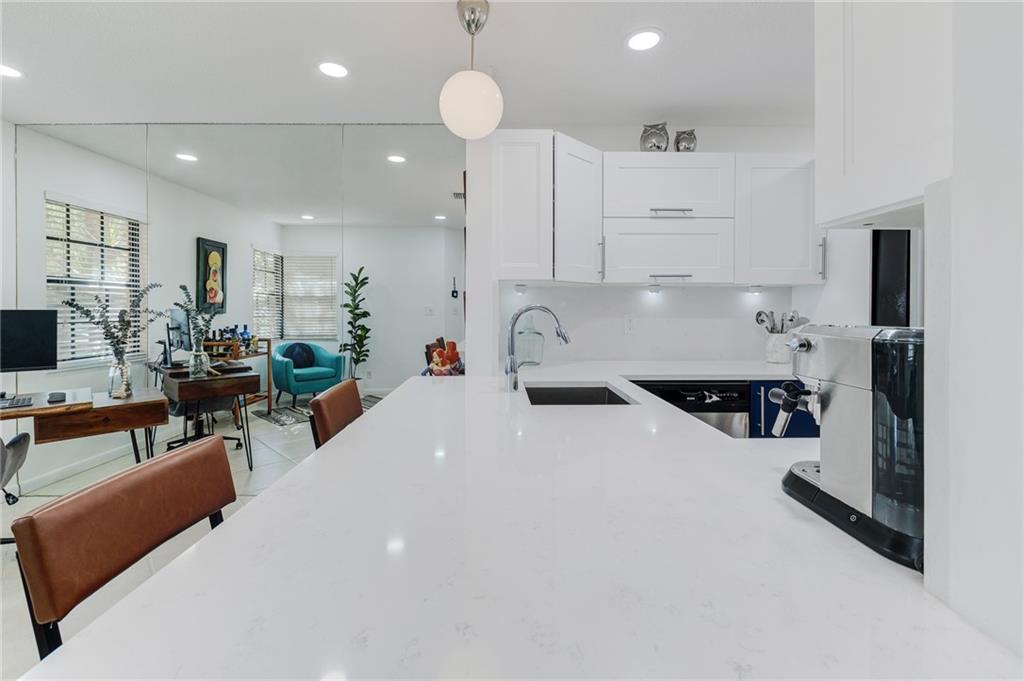 UNDER CONTRACT! ACCEPTING BACK UP OFFERS. Remodeled townhome blocks from Wilton Drive, 10 minutes to Las Olas/Downtown and 15 minutes to the beach! This light and bright townhome includes an upgraded open concept kitchen with quartz countertops and stainless appliances, new side by side washer/dryer. Remodeled bathrooms boasting ceramic glass tiles with illuminated vanity one touch mirror, and sliding barn style double door entry. Extra den/office area, impact glass windows and doors, large tiled patio lush with plants and foliage just off the living area, heated pool with easy access from the backyard! two primary bedrooms upstairs each with en suite bathrooms. New electric panel. Two parking spaces out front gives the feeling of living in a single family home.