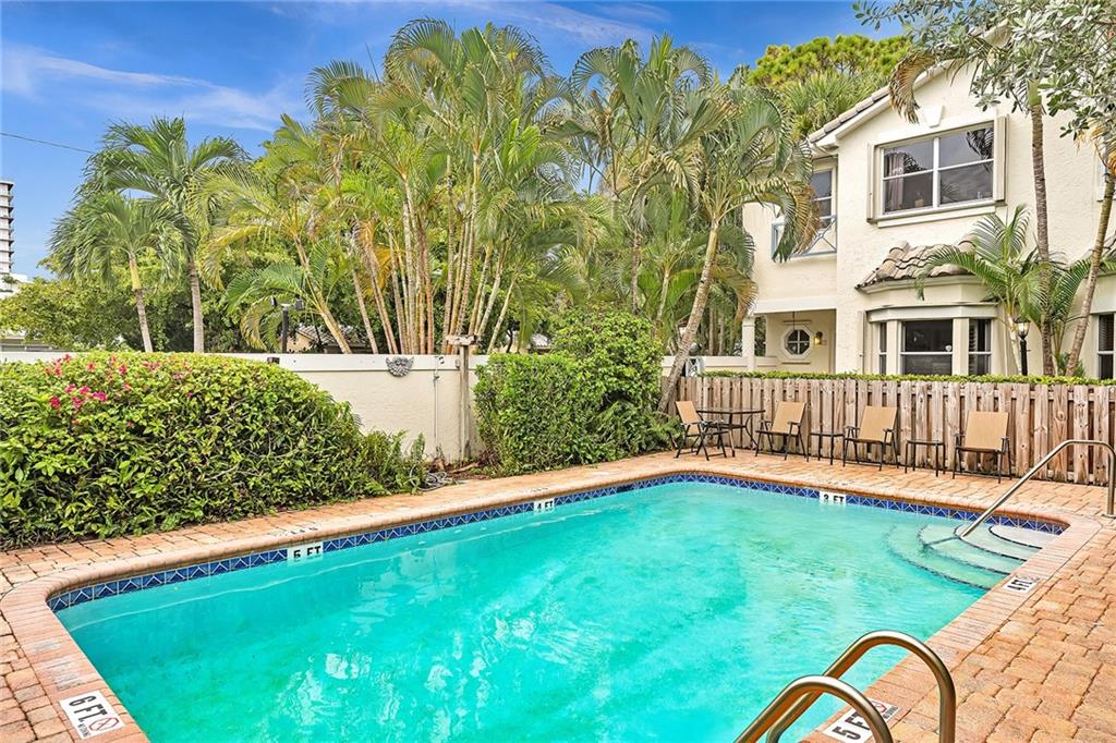 Enjoy gracious living in Victoria Park in this boutique fee simple 2-bedroom, 3-bath townhome! Impact French doors lead to your private courtyard retreat: deck & gazebo with access to Holiday Park bringing outdoor fun right to your backyard! Formal dining room on first floor can be den/office/3rd bedroom. Travertine floors downstairs. Kitchen open to living room features granite counters, snack bar & pantry. Primary bedroom has private balcony, volume ceilings, large closets & ensuite bath with dual sinks. Second bedroom has peaceful pool view, window seat with built-in shelving and totally remodeled ensuite bathroom. Tandem parking space and guest parking! Pet-friendly. Minutes to Las Olas, beach, shopping, restaurants & more! Check out 3D Matterport tour & schedule your appt!