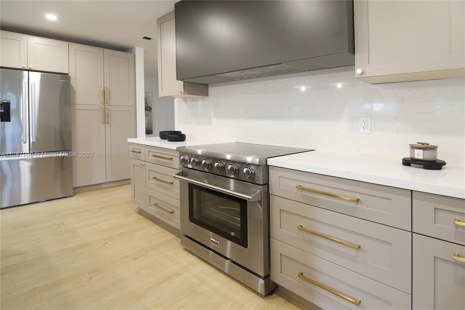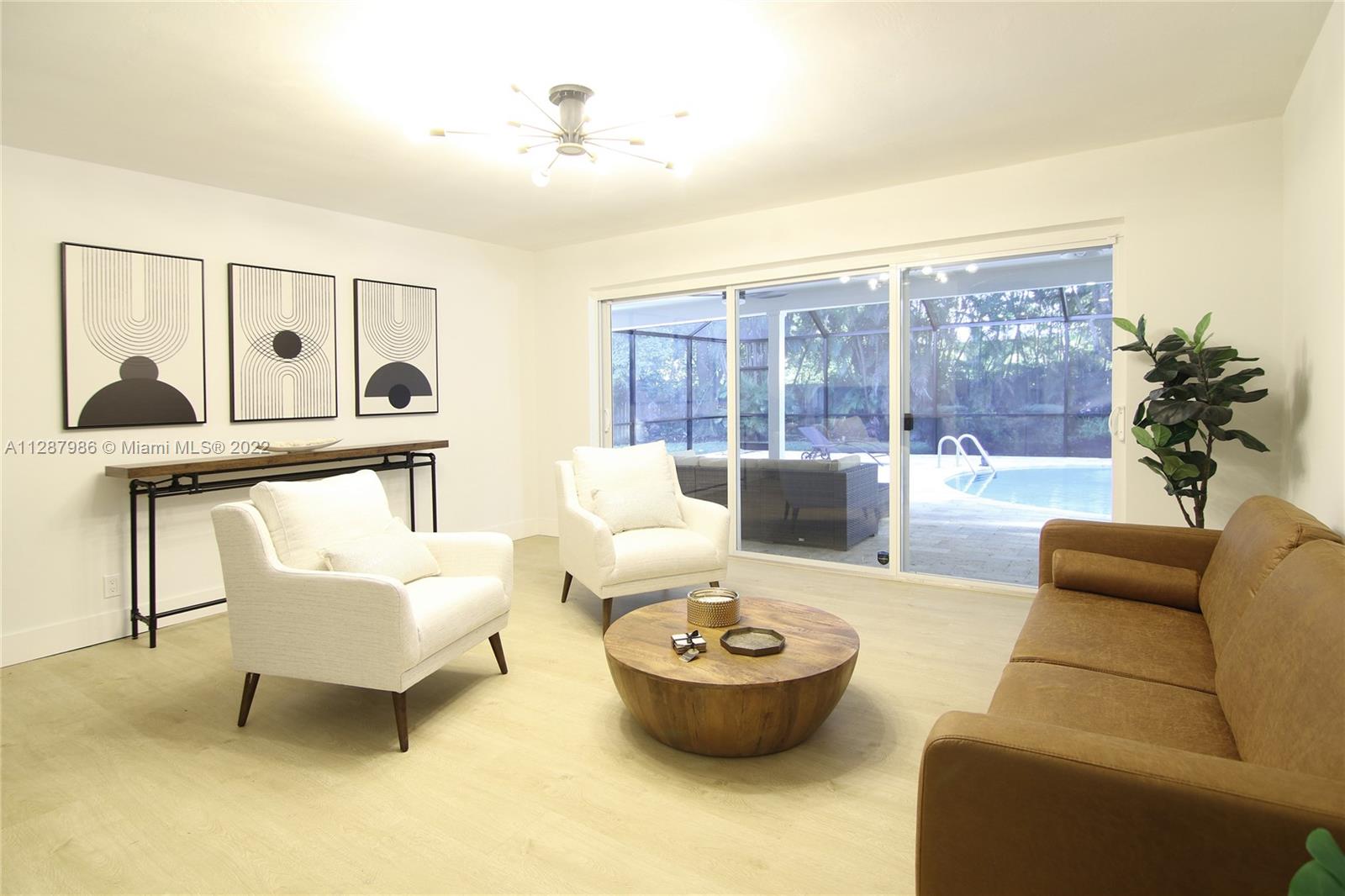 This beautifully remodeled Pinecrest home sits on a quiet corner of Palmetto Island. This home offers 5 bedrooms, 4 bathrooms, 2 separate living and dining areas and a bright laundry room. Two of the bedrooms are en-suite. This home is great for entertaining with spacious open areas and a custom wine cellar. The open layout is filled with natural light. The spacious kitchen features quartz countertops, SSl appliances and custom hood. All design elements have been carefully selected and customized to make this a unique home. The backyard features a large covered terrace, remodeled pool and deck, and a new outdoor kitchen. Enjoy the peace of mind of living in a fully remodeled home with a new roof, new impact windows, new ACs, new water heaters and updated plumbing. Designed by Porta Negra.