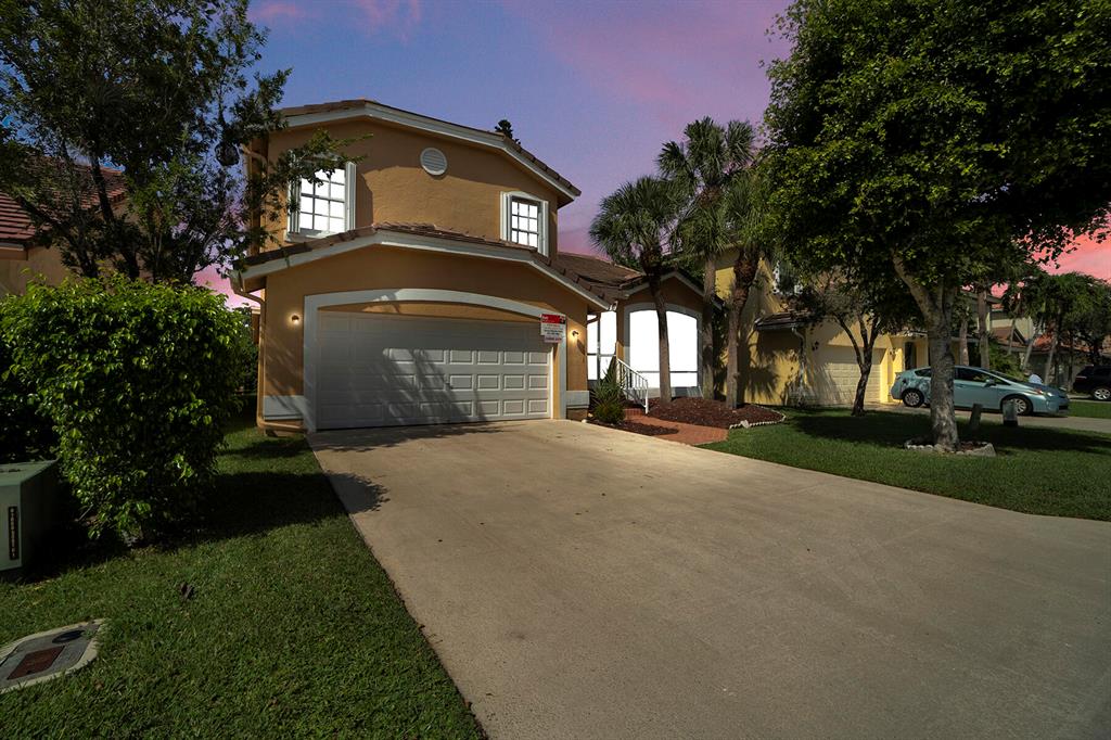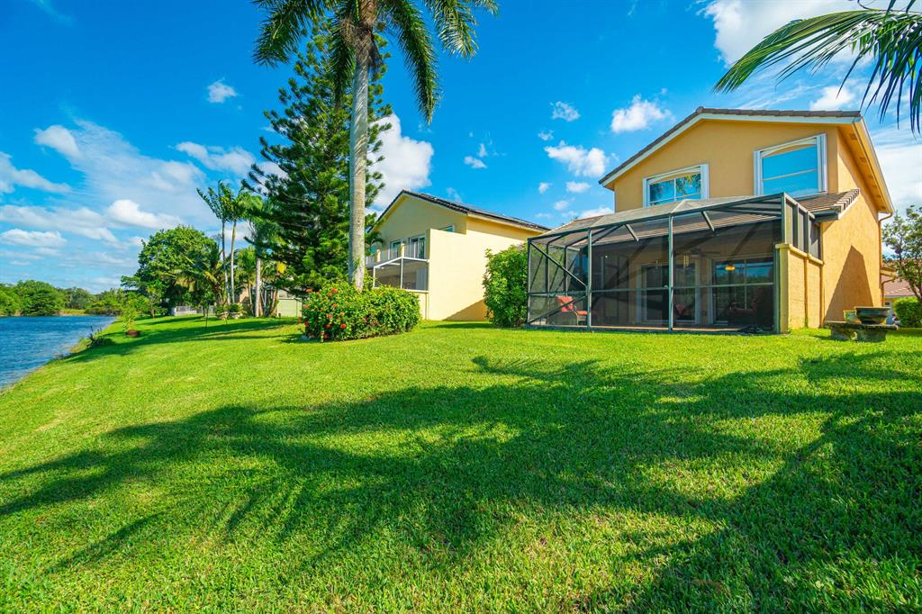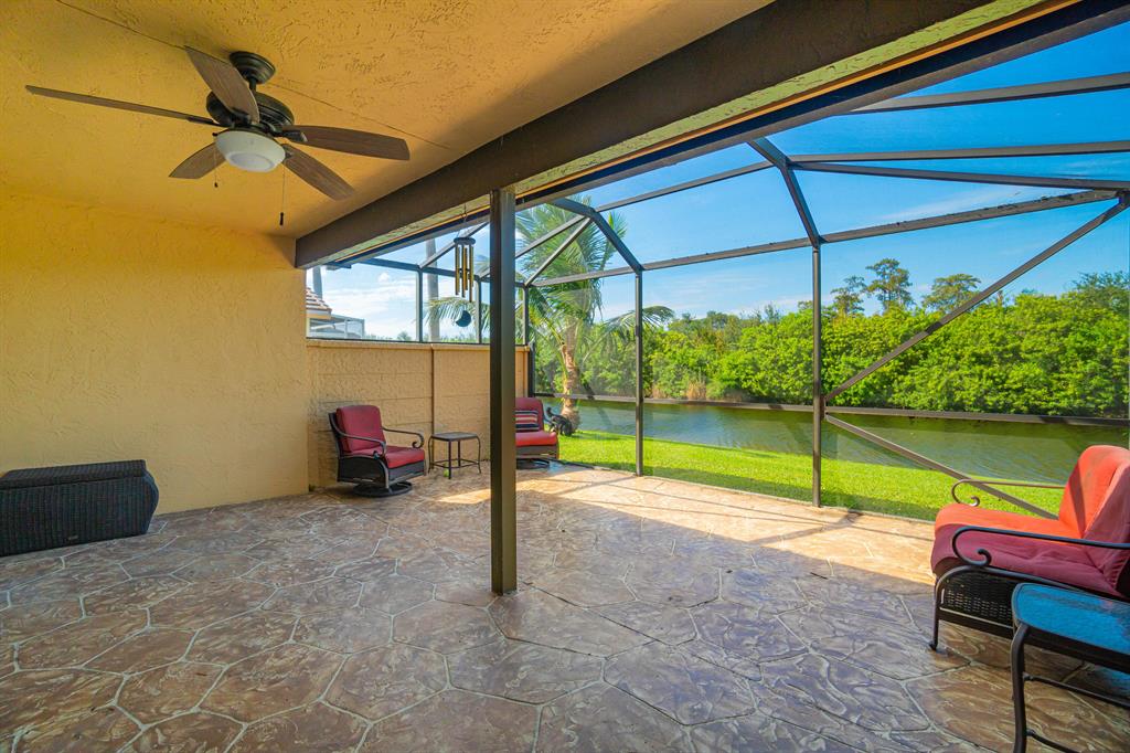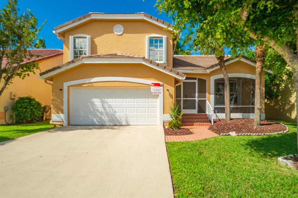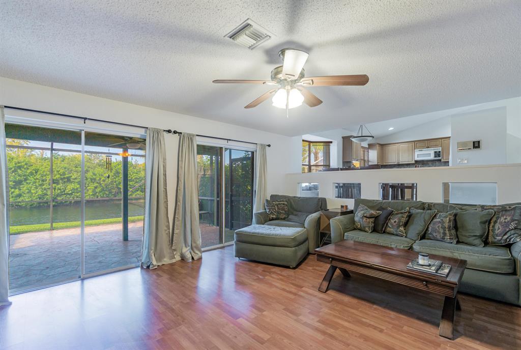 Tranquil Lake View from you coverd water view from your covered screened porch.This home features 3 Bedrooms and 2 full and 1 half Bathroom. This beautiful home has an open floor plan on the main level, a wonderful sunken in family room, with a spacious backyard with a room for a pool. Enjoy the kitchen with its white appliances and brown cabinets, the beautiful canal view inside the covered screened patio. This home also has a working Intercom, vaulted ceilings, front door and garage door has hurricane protection, windows as accordion hurricane shutters, AC installed 2019, Roof is 16 years old. This will not last!Also ECM Contract that the buyer can transfer and pay proration.
