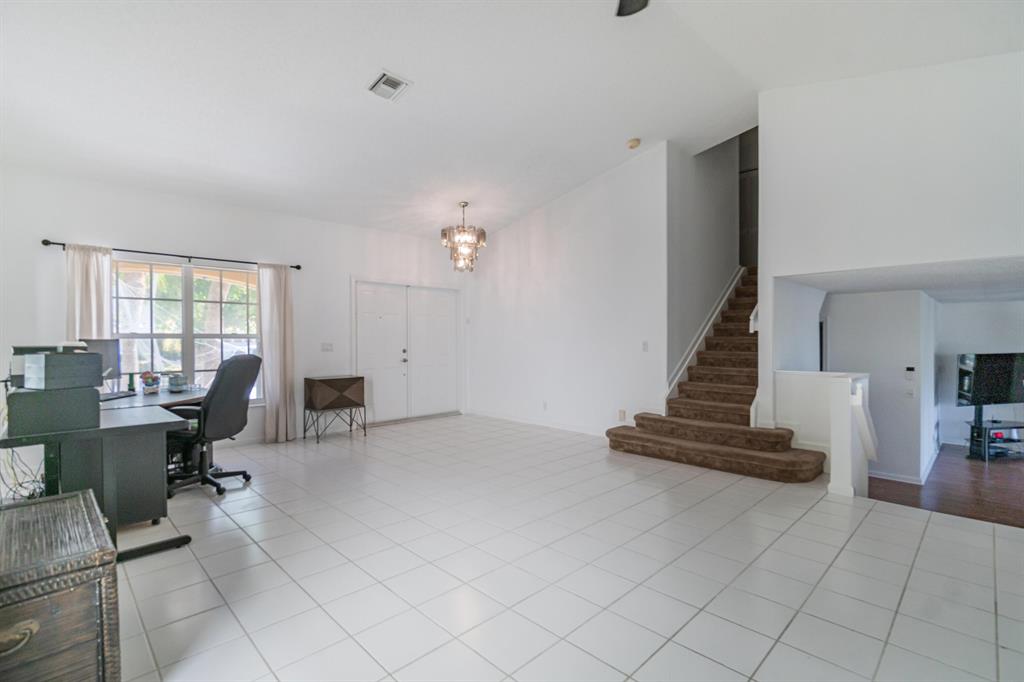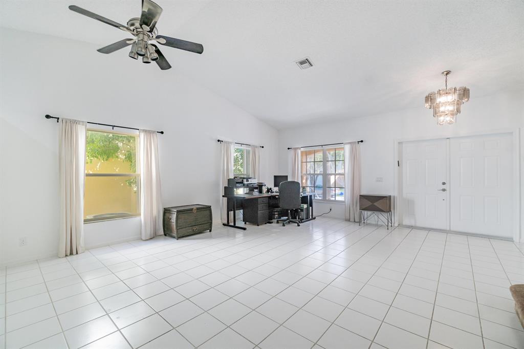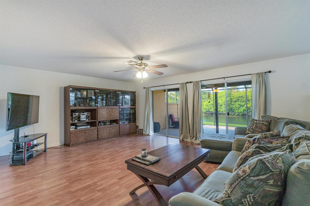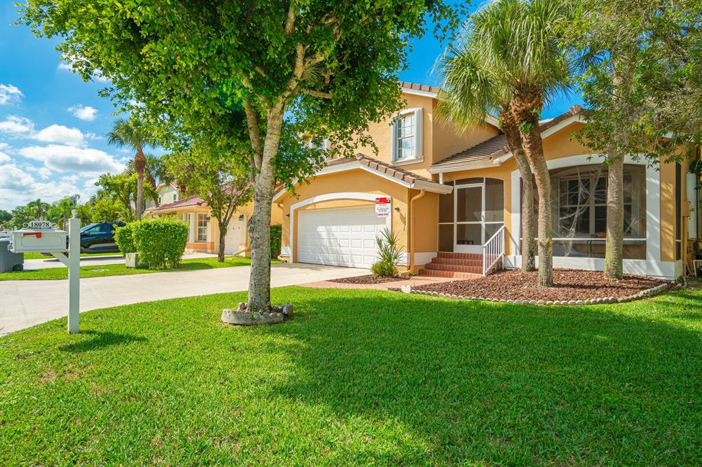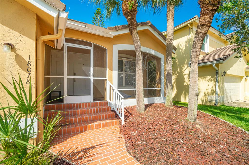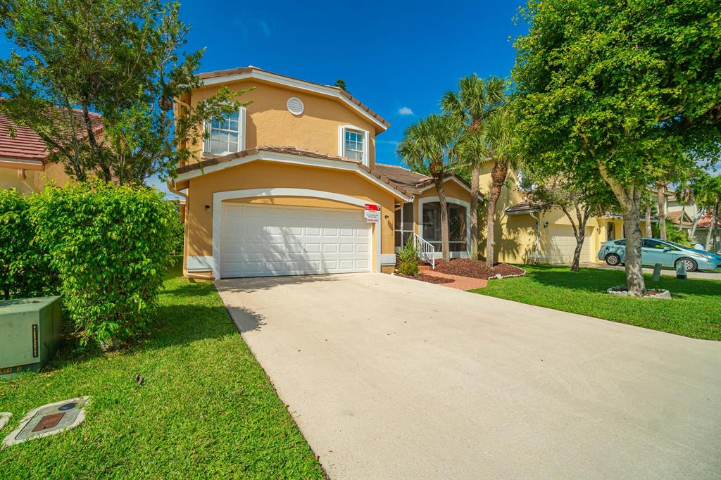 Tranquil Lake View from you coverd water view from your covered screened porch.This home features 3 Bedrooms and 2 full and 1 half Bathroom. This beautiful home has an open floor plan on the main level, a wonderful sunken in family room, with a spacious backyard with a room for a pool. Enjoy the kitchen with its white appliances and brown cabinets, the beautiful canal view inside the covered screened patio. This home also has a working Intercom, vaulted ceilings, front door and garage door has hurricane protection, windows as accordion hurricane shutters, AC installed 2019, Roof is 16 years old. This will not last!Also ECM Contract that the buyer can transfer and pay proration.
