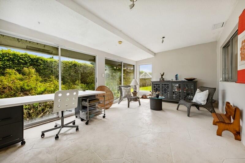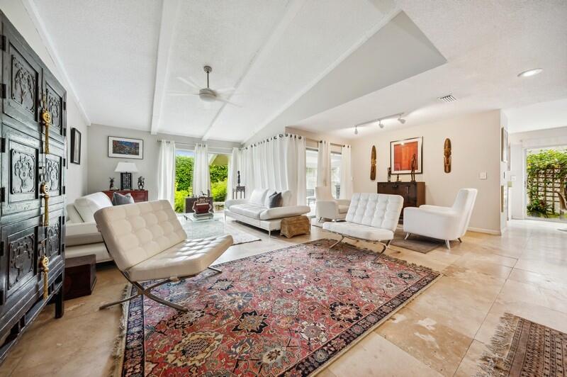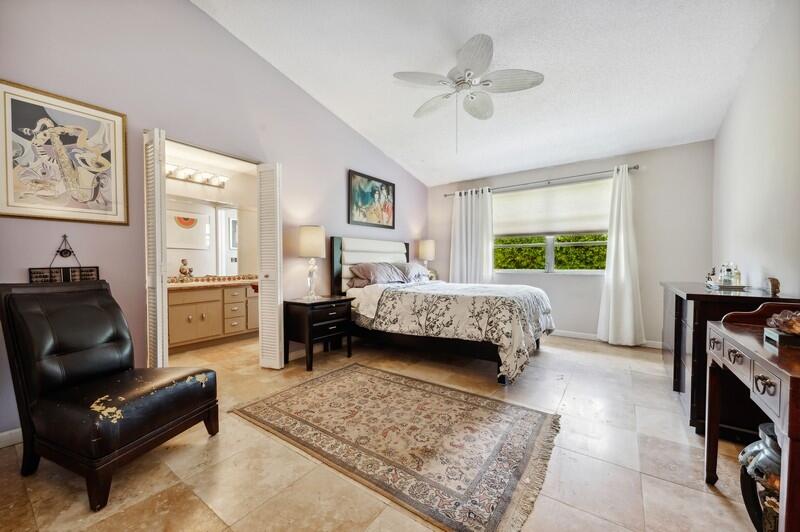 Amazing opportunity in Cameo Woods located in Central Boca Raton. Within minutes to I95, just 4 miles to the beach and close to shopping and great schools! This all age no membership required community is positioned in one of the best areas Boca Raton has to offer while being zoned for ALL A SCHOOLS. This 3 bedroom, 2 bathroom home features a stacked floor plan with spacious rooms, volume ceilings and a large master suite. You will love the vaulted ceilings with the exposed wood beams in the living area while enjoying your oversized enclosed Florida Room.This community has 2 heated pools and a low HOA fee of $300 a month (paid quarterly as $900). This includes landscaping and exterior painting your house every 5 years. Home is offered furnished.