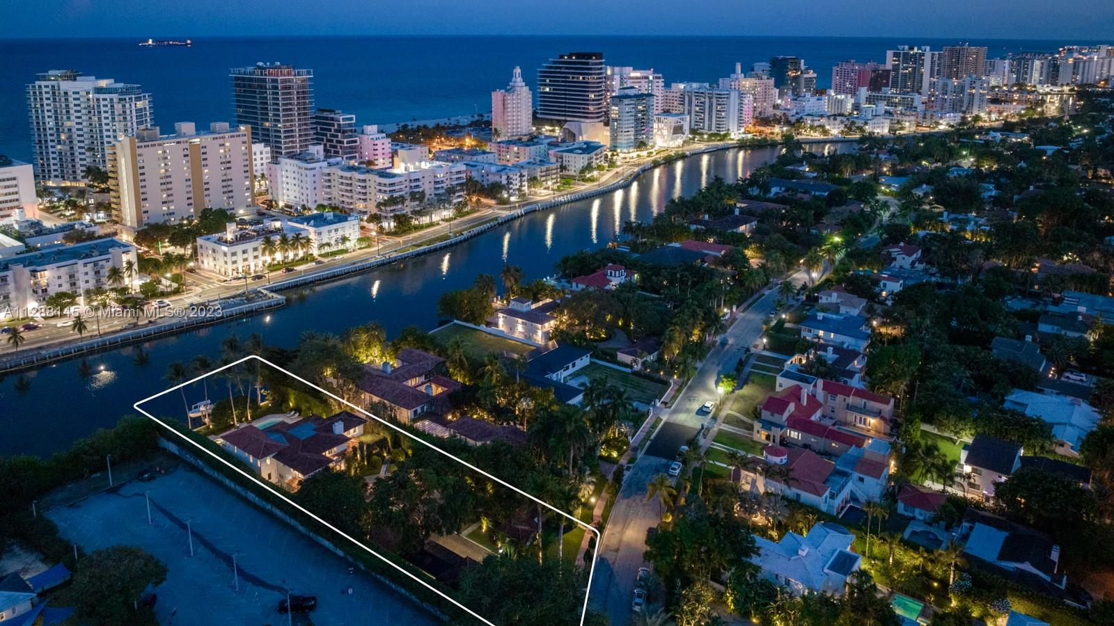 Magnificent waterfront estate with Mediterranean architecture by famous architect, Carlos Schoeppl! Located on prestigious Flamingo Drive, the secluded 32,000-sf property has an impressive estate entrance leading to the main house. The expansive living areas feature stunning original details, high ceilings, fireplace, media room, marble gourmet kitchen, formal dining. Huge master bedroom with modern bath, walk-in closets, & terrace overlooking the water. 5 beds up, 2 beds down, 2 detached guest-suites. Outside, idyllic porches surrounded with flourishing vegetations, corral stone waterwall, huge pool with spa, dock with a boatlift, 100-FT of WF