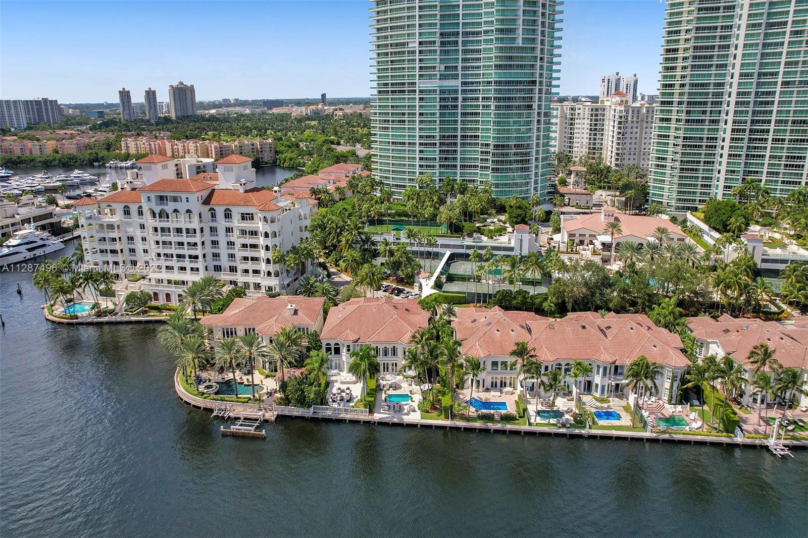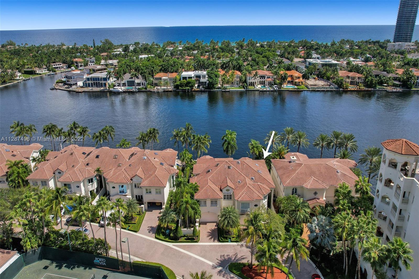 PORTO VITA Luxurious waterfront residence offering the ultimate setting for entertaining, both indoors & out. Directly on the Intracoastal Waterway with its own private pool. This 4-bedroom 5 bath home has a large outdoor space with seating areas for entertaining & spectacular waterfront views across the intracoastal to Golden Beach. 2 car garage with additional storage. Private elevator. Secure gated community with Spa, Restaurants, Tennis, and much more! Located on Prestigious Country Club Drive in the Heart of Aventura. 3.5-mile walking and bike path across from the property. Minutes to the Beach.