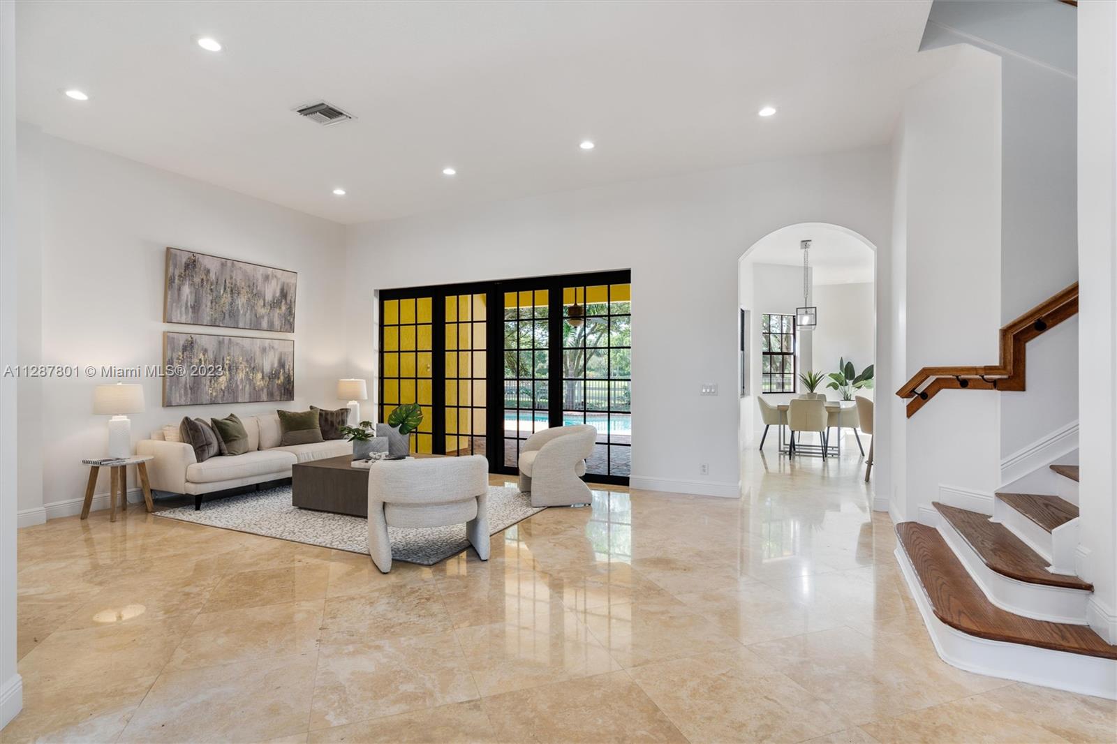 Tucked away in boutique, gated, Parkland Estates, a community of 35 homes sits a sprawling 5BR/4BA/Office Mediterranean-inspired residence. 4,300+SF, 1/3acre, waterfront w/heated pool & spa. Oversized driveway, 3-car garage & 2nd-story balcony. Step in-eyes drawn to volume ceilings, travertine floors & canal & pool views. Formal DR w/access to butler's pantry/bar leads to chef's kitchen w/GE Monogram Pro appliances, walk-in pantry, cooking island, counter bar & 2 dishwashers. Interior just painted! 1st floor: owner's suite w/door to pool, walk-in closets, ensuite bath w/Jacuzzi, frameless shower, 2 sinks & water closet, office, LR, laundry room. Wood stairs to 2nd floor, loft area, 4BR& 2BA. Back ideal for entertaining. Covered patio, seating areas, fenced in. Come say YES to this address.