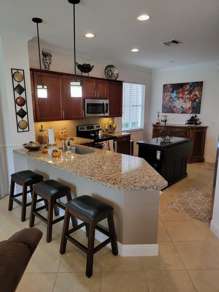 Home can be purchased with or without full furnishings. This pristine townhome in the gated community of Oakton Preserve shows like a model home! Built Dec 2014, this waterfront west-facing townhome offers 3 BR, 2.5 bath, loft, & 2-car garage with overhead storage. The downstairs consists of an open living room and kitchen area with diagonal tile flooring. The upstairs includes an oversized master bedroom with dual closets, a large master bath, hardwood flooring throughout the upper floor & laundry room with abundant storage. Hurricane impact windows & doors. Amenities include a clubhouse, gym, game room, and pool on the lake. HOA covers water, sewer, trash, lawn care, ext. insurance, and exterior home maintenance including roof and security gate. Low maintenance. Energy efficient. NICE