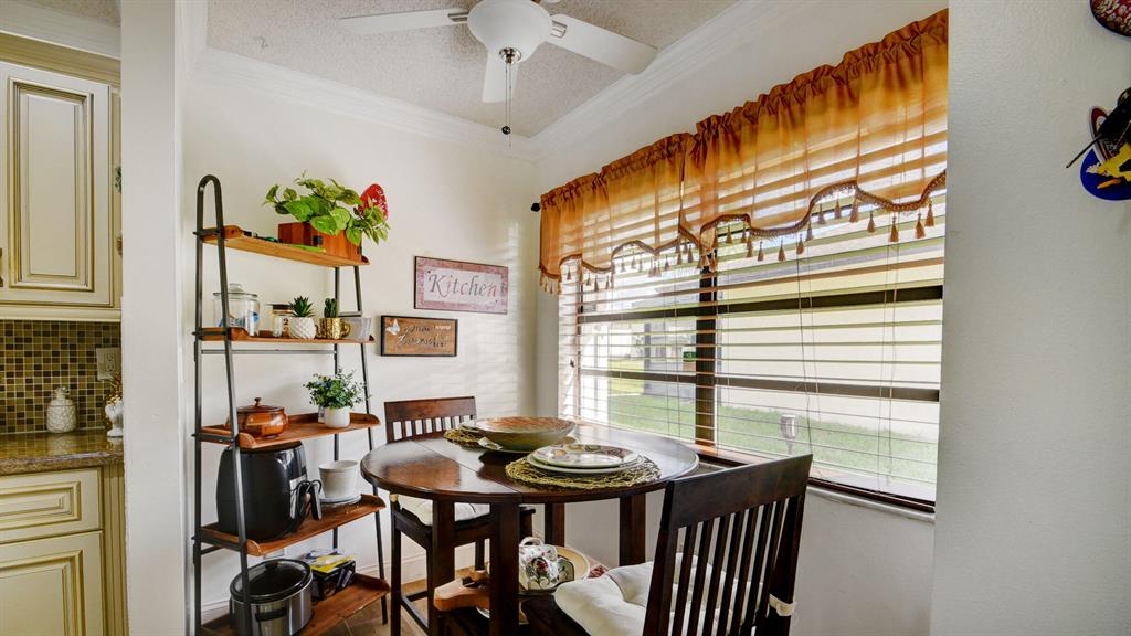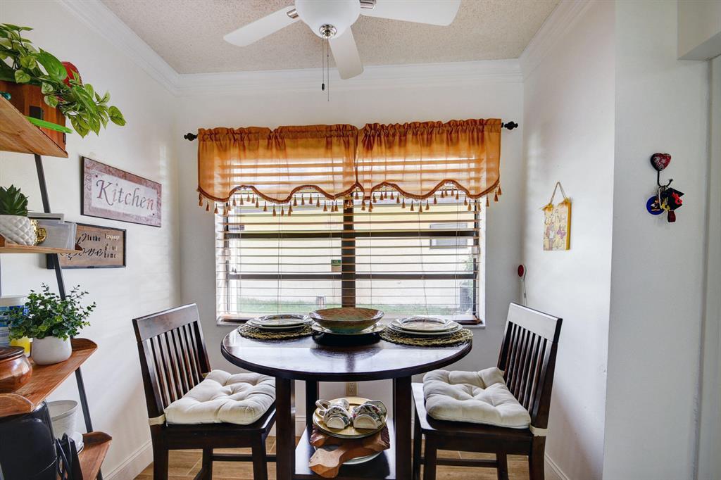 Come and see this lovely two-bedroom, two-bathroom house that includes a 1 car garage. This charming home features an updated kitchen with a cozy breakfast nook as well as bright and open living areas with plenty of room to unwind or entertain guests. The interior and exterior of the house have been freshly painted, and the baseboards and tile have been upgraded throughout the home. The 2 spacious bedrooms in the home include walk-in closets. Sit back, relax and enjoy your mornings and peaceful nights with the beautiful lake view from the enclosed patio. This community is also very well maintained and includes amenities such as pool and tennis. Low HOA!