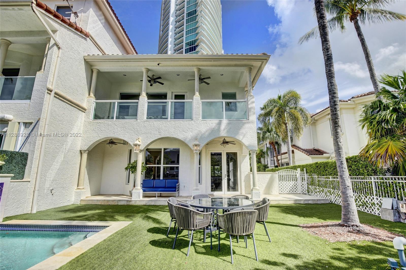 Unique property in Aventura. Travel behind the secure gates of Porto Vita to find this rare two-story luxury townhome with private dock that enables safe dockage for vessels up to 80'. Enter the home through a private courtyard to marble floors, a gorgeous staircase and a custom built area for entertaining. 3 bedrooms with ensuite bathrooms. Spacious his & hers walk-in closets in master suite as well as a balcony overlooking your private pool. Impact windows, two car garage and so much more. Porto Vita amenities match that of a 5-star resort including a pro tennis complex, basketball courts, fine dining, spa, residents pool and clubhouse. Live the all inclusive vacation lifestyle while maintaining the privacy of your own home right in Aventura.