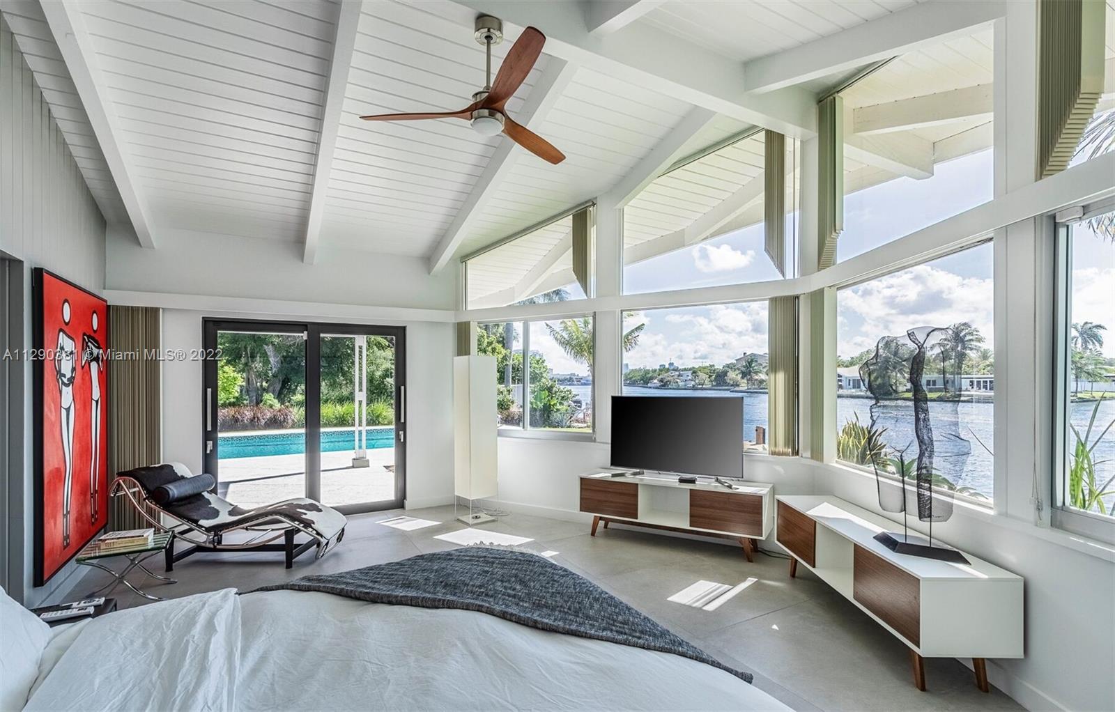 The architects, Dan Duckham & Chester Trowbridge, in 1960, created a stunner related to the work of Frank Lloyd Wright. This single story house features an asymmetrical roofline & vast expanses of glass. Being in the hands of the same family for 58 years, the new owner renovated it entirely & meticulously. High end appliances, impact windows & doors, open kitchen, stacked stones, large Italian porcelain tiles. Superb craftmanship, period appropriate detailing, the continuity of the materials & respect of the original design are what make this minimalist mid century modern renovation so successful. Ground up restoration in 2018-19, 34x17 Deep (7ft+) pool, heated & salt chlorinated, 8 flatscreen Tvs, in/out SONOS system, 19,295 sf lot, Fully furnished w/some Art. SEE BROKERS REMARKS