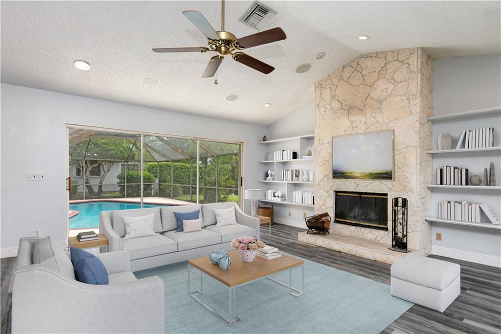 Welcome to North Springs! This no HOA community is located in beautiful NW Coral Springs & is in of the most sought after school districts in Broward County. This home features a spacious split bedroom plan, vaulted ceilings, vinyl plank flooring throughout, a very large living room, formal dining, family room, & a brand new AC (2022). The center piece of the family room is a beautiful cut coral fireplace. Looking for a space where you can relax & enjoy? The large screened in pool & patio is perfect to unwind after a long day at work or to spend time w/ family & friends. On just under a 1/4 acre fenced lot there is plenty of space for your fury friends to play. The home has privacy as it backs to a canal which is also the perfect place to do a little fishing. Don't miss out on this one!