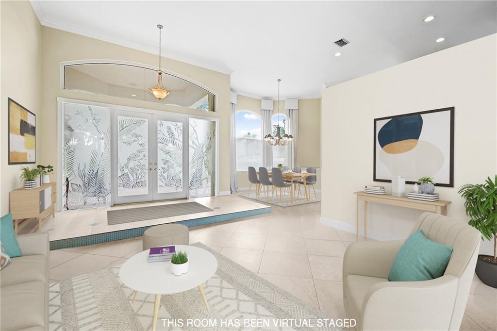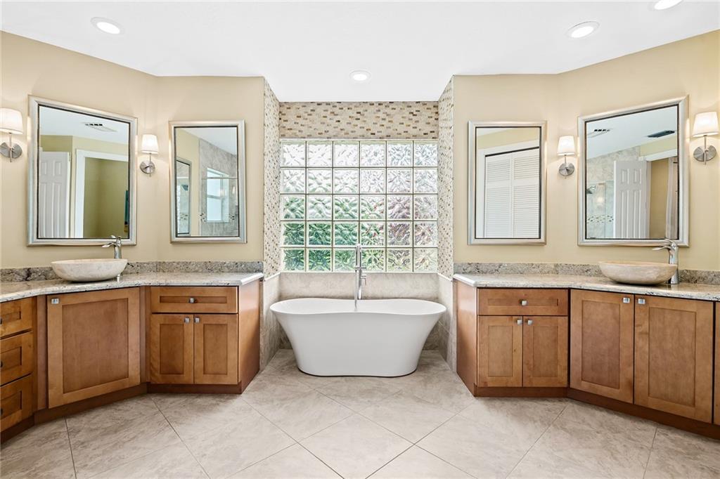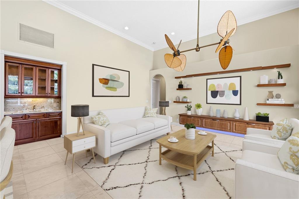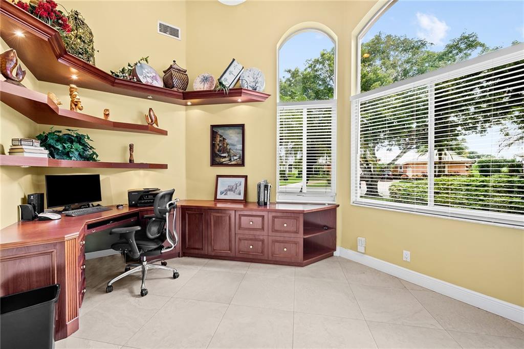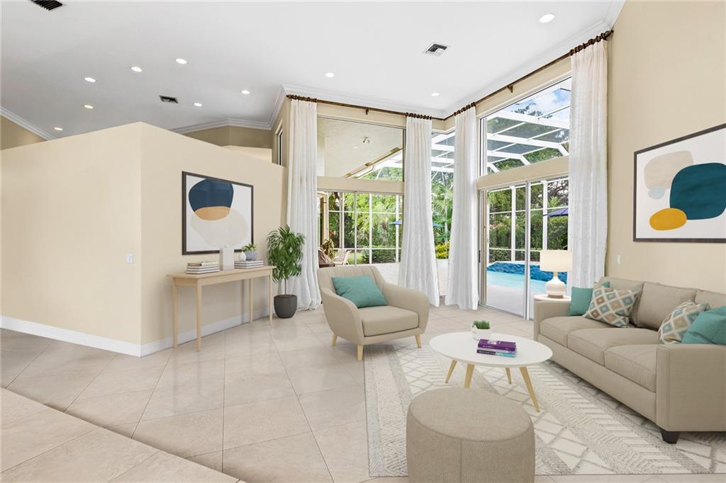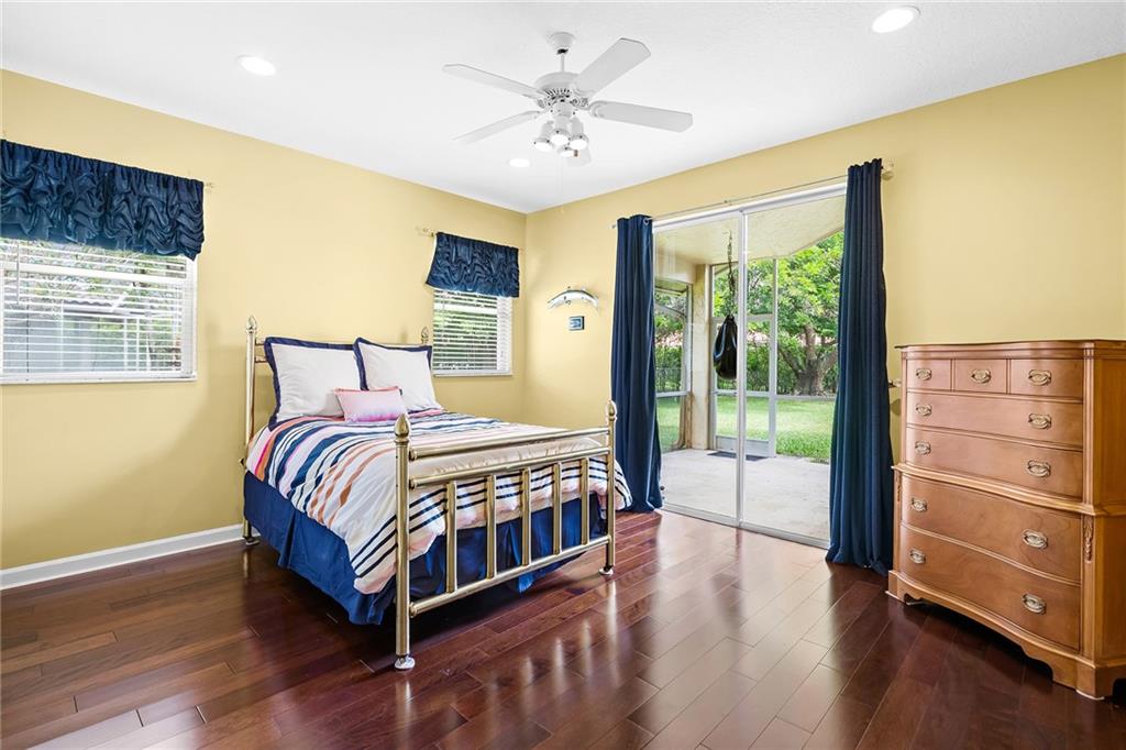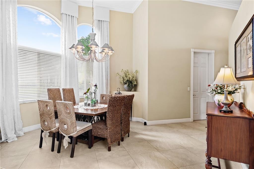 Located in prestigious gated Eagle Trace. Pristine updated home located on an oversized lot in the Greens features five bedrooms, four bathrooms,(5th BR used as office),paver circular driveway with an elegant porte-cochere entrance,three car garage and hurricane protection. You will feel at home the moment you enter this exceptional property with volume ceilings,open bright and spacious living room,dining room,family room w/built in wet bar overlooking a chefs kitchen with eating area,counter seating,granite counter tops,SS appliances,plenty of cabinets & a roomy walk in pantry. Enjoy the outdoor luxury lifestyle this home offers with an oversized screened in travertine patio overlooking a magnificent pool/spa. HOA amenities include Tennis,pickleball,playground, BBall