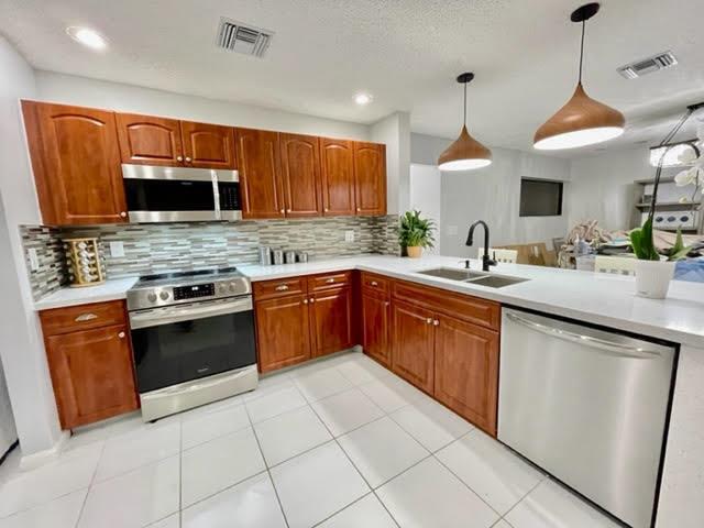 Located on a cul-de-sac, this oversized lot includes a fully updated home with new kitchen, new bathrooms, new stainless steel appliances, new air conditioners, fitted closets, new lighting and comes designer decorated with gorgeous new modern furniture! A huge back yard features a large closed patio plus a spacious open patio and lots of greenery. Beautifully landscaped, this area is ideal for entertaining and playing! Mission Bay proudly offers resort style amenities including multiple tennis courts, an olympic size pool, a baby pool, hot tub/spa, huge fitness center, various fitness classes, clubhouse, Basketball & racquetball court, playground and various social activities. The community is close to shopping, dining, South County Regional Park with golf course, dog park and more!