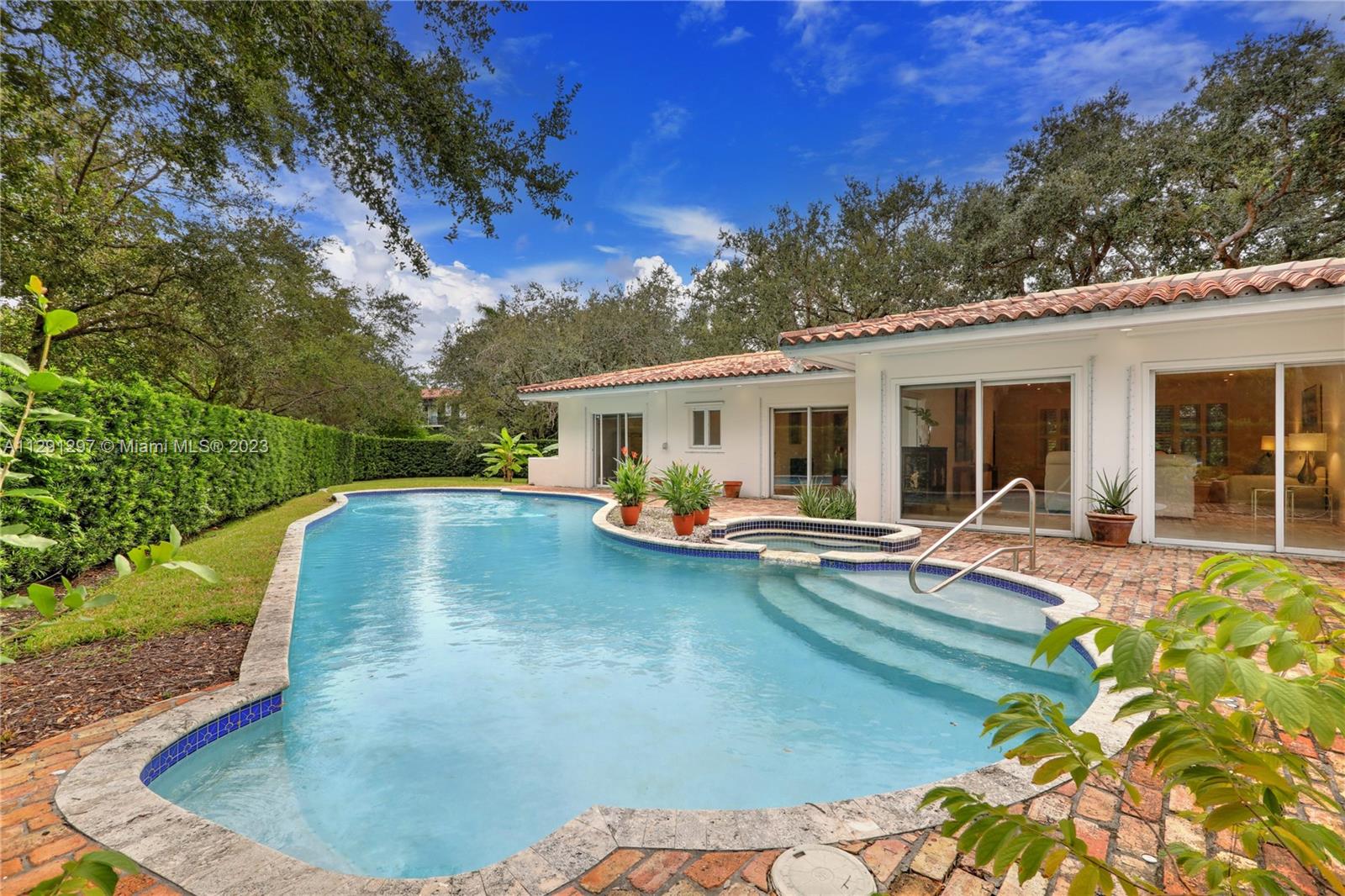 Located in the heart of Coral Gables, near Riviera Country Club, Merrick Park, & more, find this spacious 4,238 SF home on a magnificent 18,500 SF corner lot. The 4 BR, 3.5 BA, split plan home features gracious entertaining spaces including large formal living and dining rooms & wonderful family room that opens to the screened patio adjacent to the sparkling pool. The vast kitchen features timeless & beautiful wood cabinetry, high-end appliances including a gas range & 2 ovens, & 2 eat-in areas. The primary suite has 3 closets & a lovely bathroom w/ separate shower & tub w/ beautiful views of the lawn from windows on 2 sides. Other features: 2+ car garage, laundry room, marble & wood floors, plantation shutters, & accordion & panel hurricane shutters. Make this fabulous home your own!