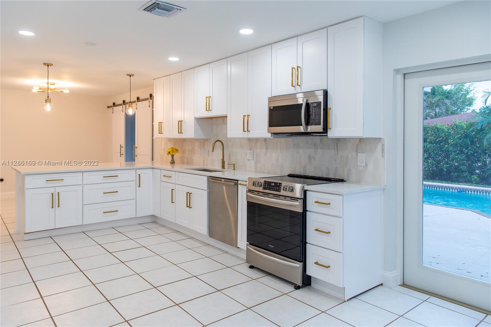 Beautiful 4 bedroom, 2 bathroom home, totally renovated and is ready for you and your family to enjoy. The kitchen features stainless steel appliance, quartz countertops, marble backsplash. Additional updates include impact windows throughout, brand new AC and ducts, LED lighting through, nest thermostat. You will enjoy entertaining in your private pool, oversized backyard that has plenty of room for gatherings for your family and friends. Investors friendly community, no rental restrictions or approval. Conveniently located to world class shopping, dining, entertainment, A rated schools, all major highways and airports.
