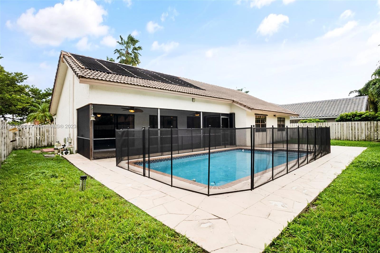 Spacious three bedroom and two bathroom home with a large pool & fenced in yard. Home features tile flooring throughout, laundry room inside the home, large master bathroom, screen enclosed patio & porch, inground swimming pool, and tons of natural light. Centrally located close to great schools, shopping, restaurants and major roadways. (Tub to be resurfaced)