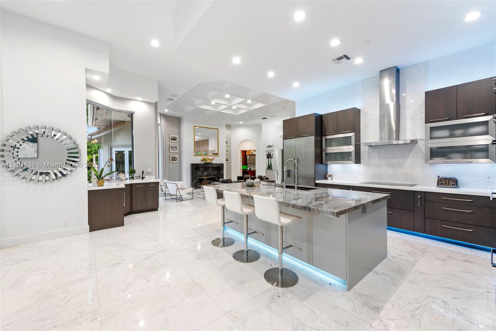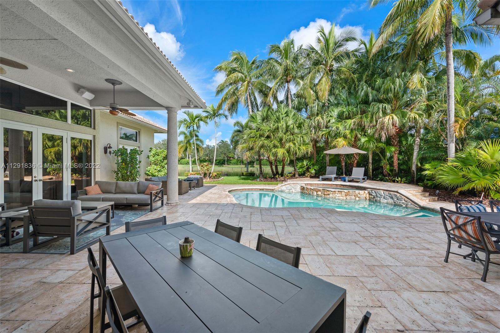 Corner Waterfront Property located in the coveted community of The Landings in Weston. 23,174 sq.ft. lot the property offers sweeping water views. Recently remodeled the living spaces seamlessly connect to the thoughtfully conceived lush outdoor areas including the covered terrace and heated saltwater pool/spa with plenty of space for lounging in the sun. The home features 4BR/4.5BA+Custom Office/Library, Large Den, Formal Dining room & 3-car garage. Entertainer’s kitchen, volume coffered ceilings, wet bar, wood burning fireplace and light filled interior are among the many modern conveniences to be enjoyed and perfect for the discerning Buyer.