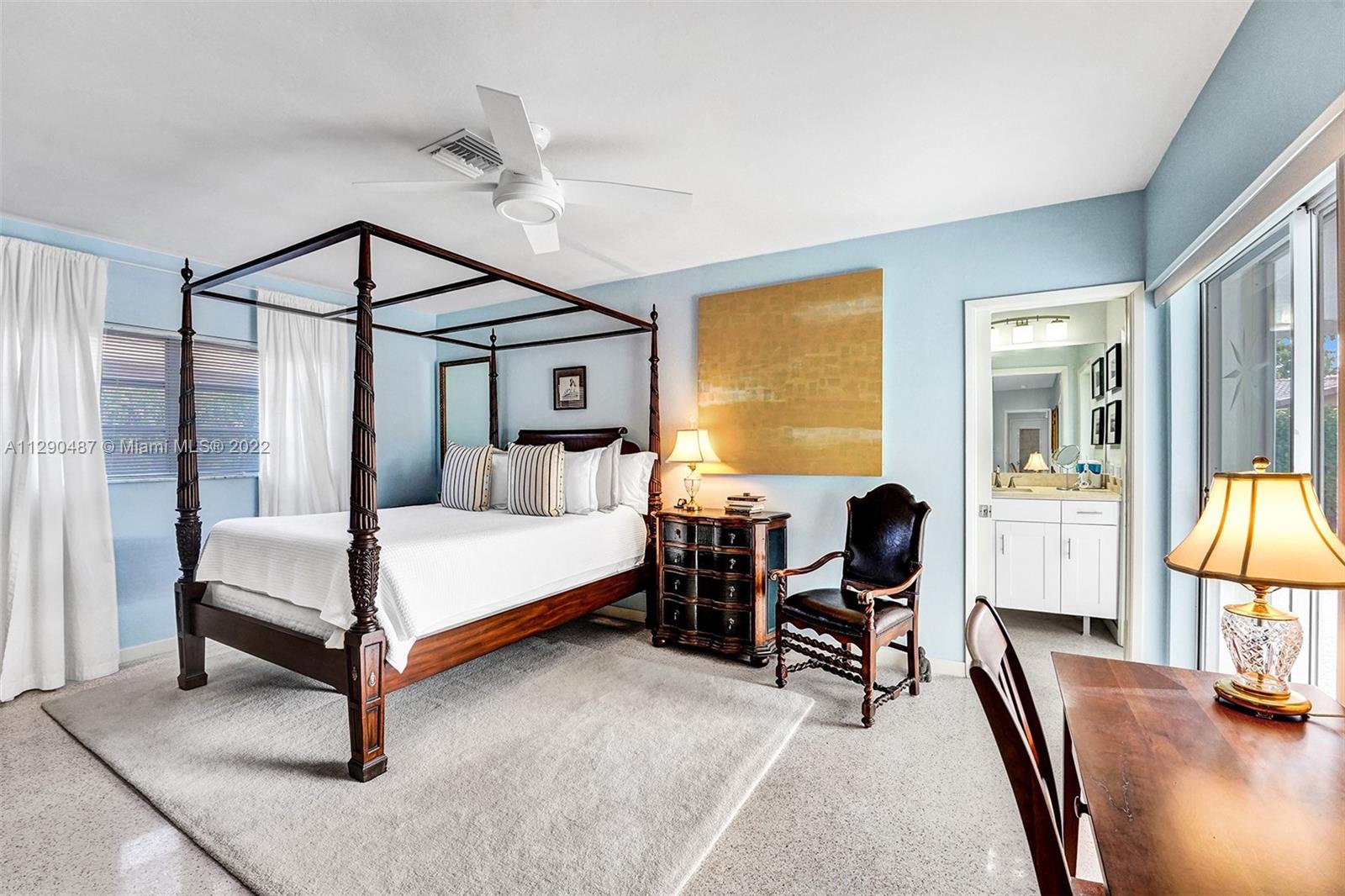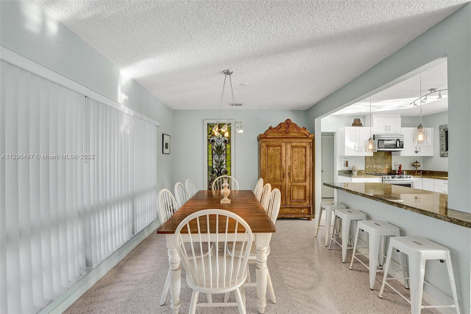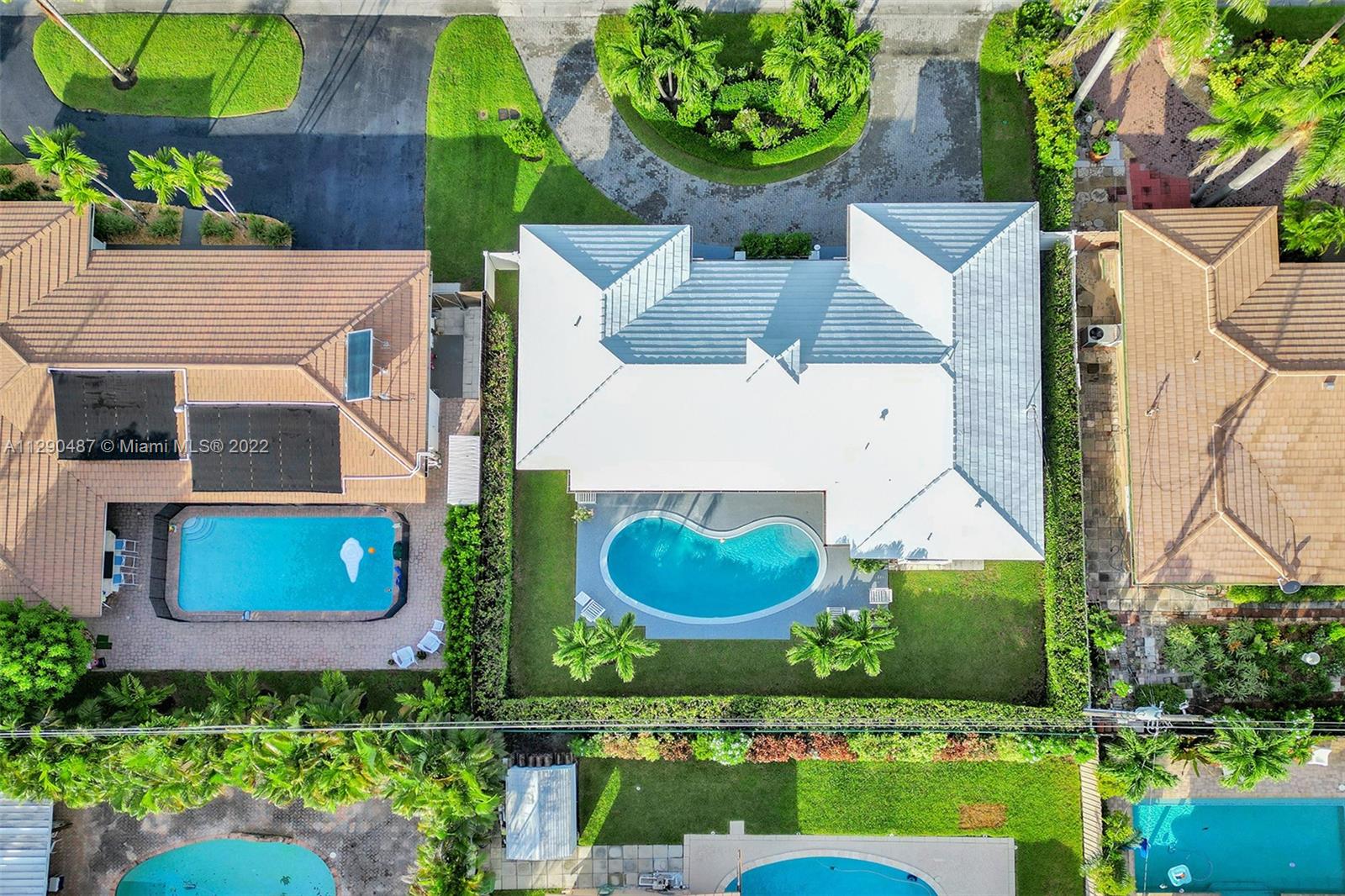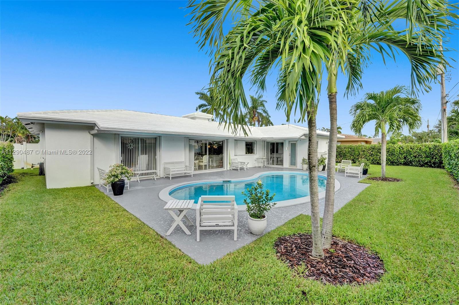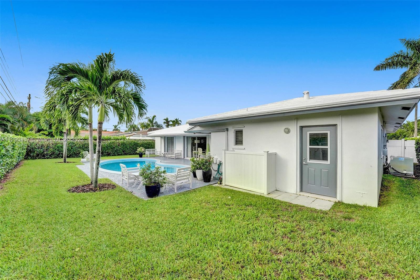 Immaculate 3/2 pool home in move-in condition. Many recent upgrades including white kitchen, SS appliances, granite counter, marble bathroom, glass shower, original gleaming Terrazzo floor, open floor plan w/pool garden view, private master wing with access to pool, walk in closet, guest wing w/private bath, pool access, double closets. Paved circular driveway, sprinklers, professional landscaping ,hurricane shutters, 2 car garage, laundry room, utility room and much more...