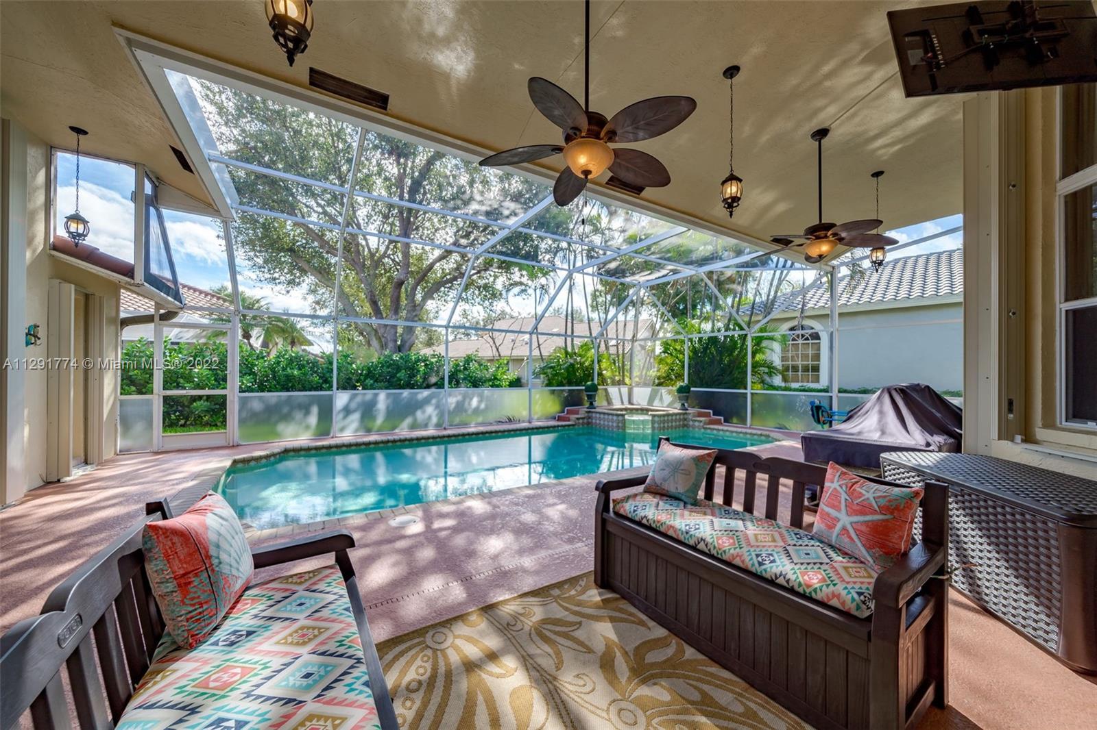 JUST REDUCED! Stunning 6 Bedroom, 4 Bath, 3 Car Garage SFH with a Pool/Spa in the Highly Sought after Private Golf Community of Eagle Trace. This Charming Airy & Bright Beautiful Home Features: Circular Driveway, Lush Landscaping, Screened-In Salt Water Pool with Spa, Volume Ceilings, Open and Split Floor Plan, Smart Home Enhanced, Formal Living Room, Breakfast area with Bay Window, Cabana Bath, Laundry Room, Lots of Windows, Wine Room, Den/Office, Family Room, Walk-In Closets, Master Bath has Frameless Shower & Whirlpool Hot Tub, His/Her Vanity Sink, Completely Upgraded to include, Brand New 2022 "Dream Kitchen", Upgraded Bathrooms, Upgraded Flooring, Freshly Painted and so much more! LOW HOA. Community Offers, 24 hours Manned Guard Gate. Roof 2016, AC 2016, WH 2016, Pool Pump 2022.