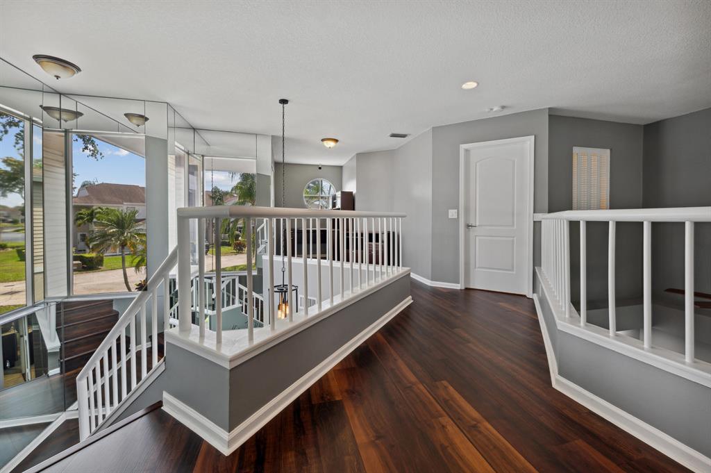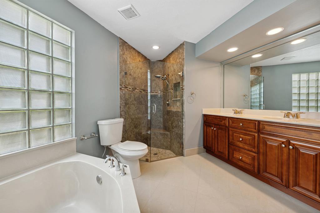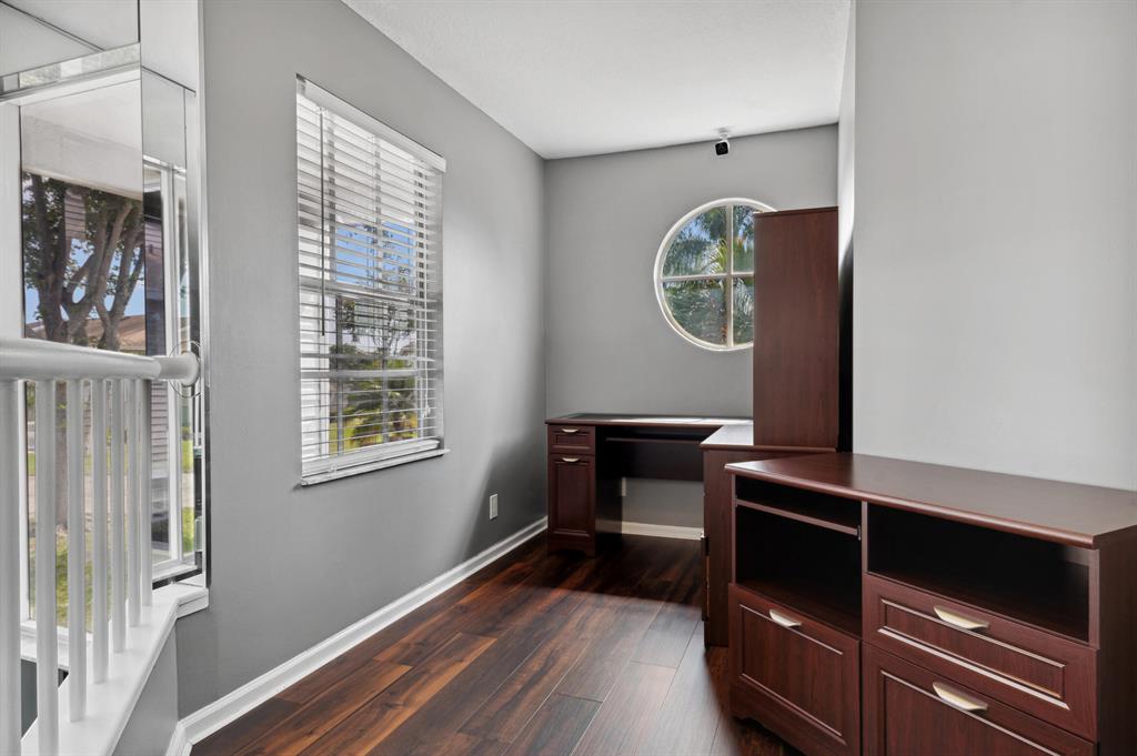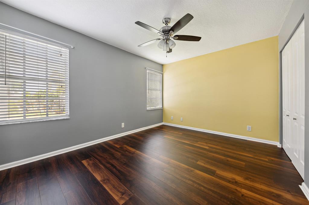 Enjoy this great updated corner town home has 3 Bedrooms/2.5 Bathrooms, first floor master bedroom with walk in closets. and large side and back yard. Renovated master bathroom with dual sinks and a separate tub & shower. 2 guest bedrooms are upstairs with shared renovated bathroom and a spacious office/loft. Updated kitchen with new refrigerator, full pantry, granite counter tops, newer wood cabinets and a bright eat-in breakfast area. Laundry room with new washer/dryer 2022, newer A/C, tank less electric water heater and a newer garage door. Unit has new security cameras throughout. Pet friendly community with maintenance included, club house, tennis court, gym room and more. HOA, paid by owner, covers cable, landscape, common areas, outside pest control, outside building insurance.