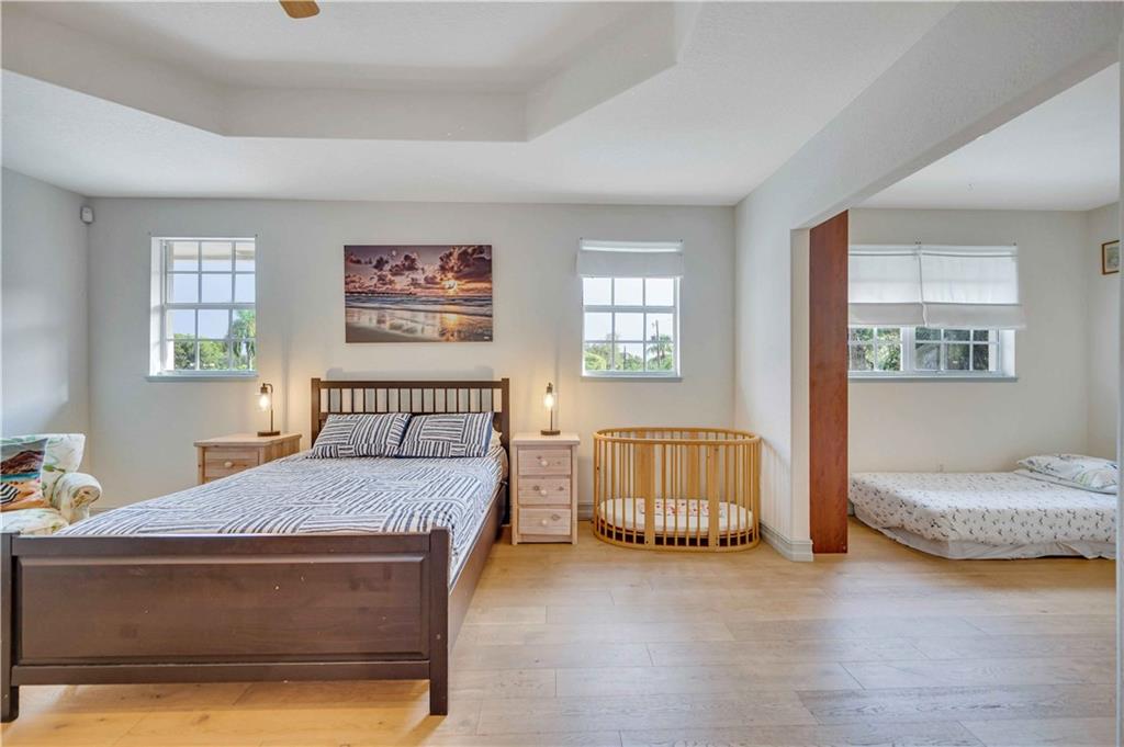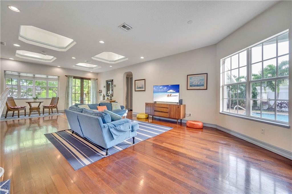 This home is bright, open and very spacious on a quiet corner in Coral Ridge. High ceilings, walls of windows, two primary suites, impact rated windows and most doors, a modern kitchen with breakfast bar and prep island, walls of cabinets, multiple huge closets, the second floor bedroom suite features an adjoining office and luxury bath with a Roman tub and separate shower. The oversized two bay garage opens to a huge, circular drive. A roofed patio overlooks the very private gardens surround a large pool ideal for swimming laps. Surrounded by all single family homes and located under a mile from Bayview Elementary school. Beaches and parks are minutes away.