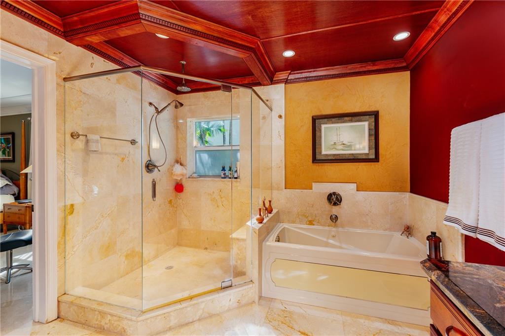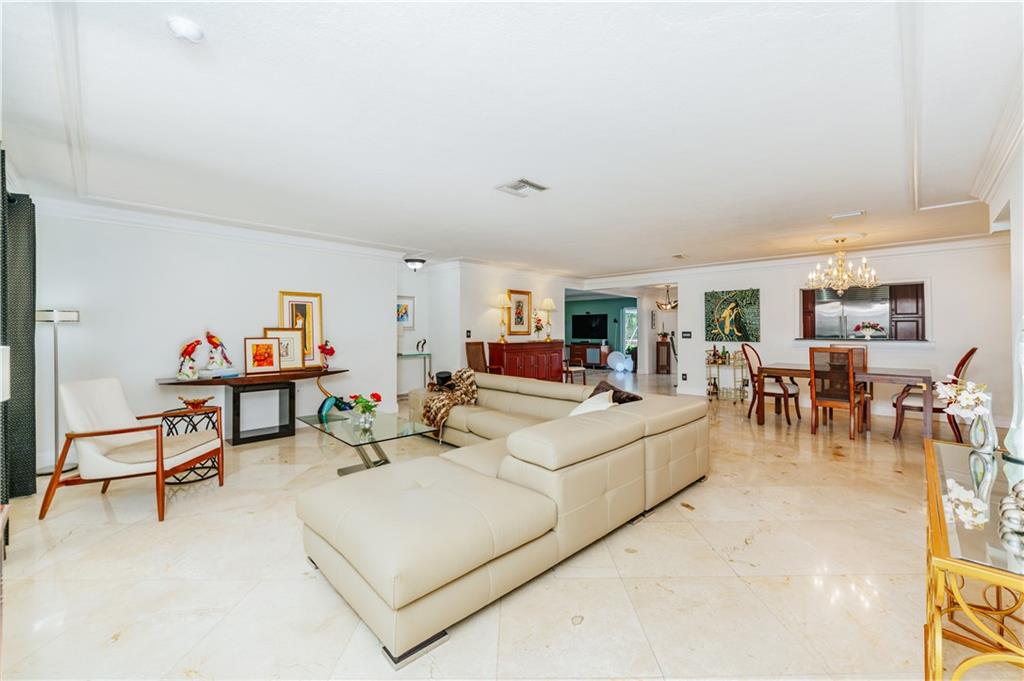 Welcome home to a Quiet Oasis in Coral Ridge CC. Expansive 3299 Sq. Ft. under air, plus 2 car garage. Graciously appointed, marble flooring throughout and bold layered crown moldings. Grand Owner’s Suite boasts enormous closet and Spa style Bath. Triple Split plan with Teen/In-Law suite featuring a sitting room with fireplace. Large family room could easily become another suite with existing full bath. Viking Range & Microwave, Sub Zero Refrigerator in large kitchen designed for entertaining. French doors lead to the screened pool from main house and rear suite. Tile roof done 2013, Fence 2014. Impact Garage Door 2015 and Impact Entry Doors in 2016. Under 1 mile to the beach, Close proximity to surrounding Fine Dining. ---Perfect for Short Term Rental - could host 12 - 14 guests!
