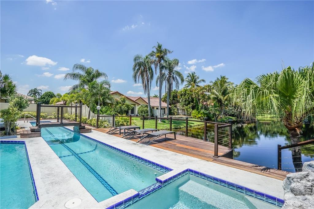 SPACIOUS AND SPECTACULAR ARCHITECTURAL HOME ON A PRIVATE CUL-DE-SAC OVERLOOKING A BEAUTIFUL LAKE! ALL COMMERCIAL-GRADE IMPACT WINDOWS AND DOORS. MASTER BEDROOM ON SECOND FLOOR FEATURES REMODELED BATHROOM AND WALK-IN CLOSETS. BREATHTAKING VIEWS FROM ALL LIVING AREAS AND MASTER SUITE. 24 FT. CEILINGS AND CLEARSTORY GLASS,3 ZONE AC. FULLY EQUIPPED GOURMET KITCHEN WITH LARGE ISLAND. OUTSTANDING OUTDOOR ENTERTAINMENT AREA INCLUDES 2 POOLS (SWIMMING POOL+ A LAP POOL) WITH A LARGE DECK OVERLOOKING THE LAKE. TENANT OCCUPIED UNTIL 07/31/2023. THE HOUSE WAS STAGED WHEN THE PICTURES WERE TAKEN. A MUST-SEE!
