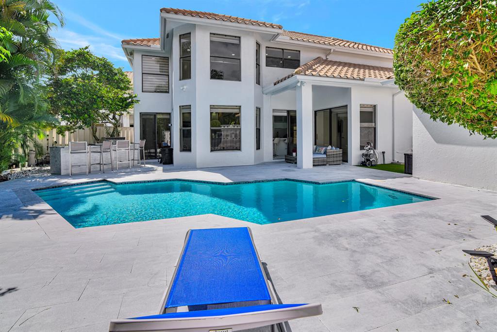 WOW! What a spectacular home. This contemporary, just completed remodeled home is located in the award winning country club at Broken Sound. Master bedroom down with a fabulous spa like bathroom, cozy family room with an electric fireplace, large modern kitchen with quartz countertops and all the bells and whistles. The gorgeous glass staircase, leads up to 2 bedrooms with a tremendous loft area. The living room is open to the dining area and kitchen overlooking the beautiful remodeled pool, deck area with marble paver , and a built in outdoor summer kitchen. This is one home not to be missed, it won't last long!