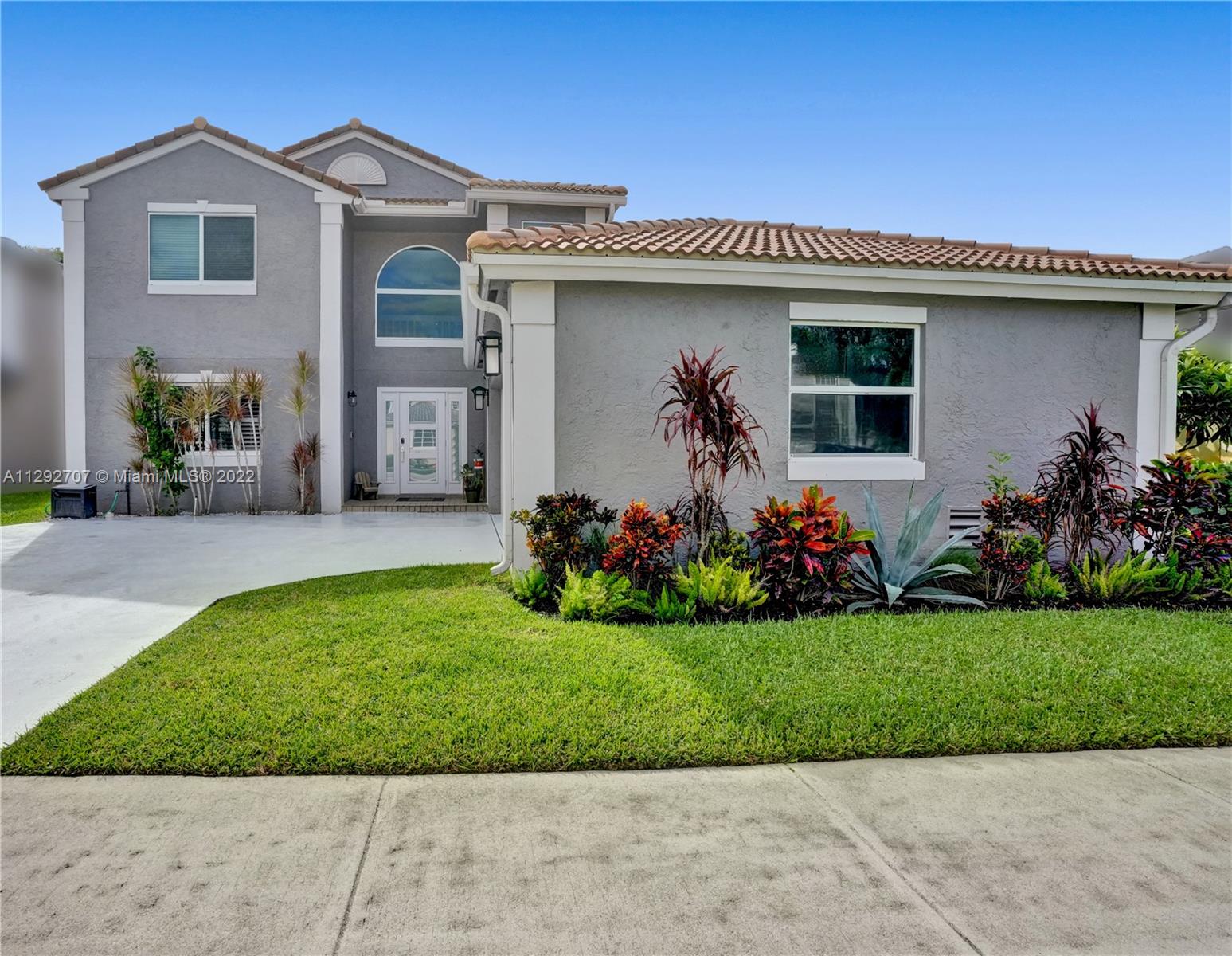 Fall in love with this exquisite, airy and sunny 4 bed/2.5 bath 2-story 2-car garage home with waterfall pool situated on a spectacular backyard. Kitchen recently remodeled features stainless steel appliances, double-oven, new disposal, updated wood cabinets and big pantry closet. Ground floor Master Suite features a skylight. Half bath located 1st floor. Plus new impact windows, plantation shutters and a storm-rated garage door. New pool plumbing/motor and 60-gallon water heater were installed in 2017. New A/C in 2018. Wonderful community that offers great amenities including 2 Pools, Spa, BBQ Grills, Clubhouse, Fitness center, Playground, Tennis, Basketball courts and Soccer. HOA includes X1 Xfinity Cable, DVR and Hi Speed Internet. The owner can have up to 2 pets, no aggressive breeds.
