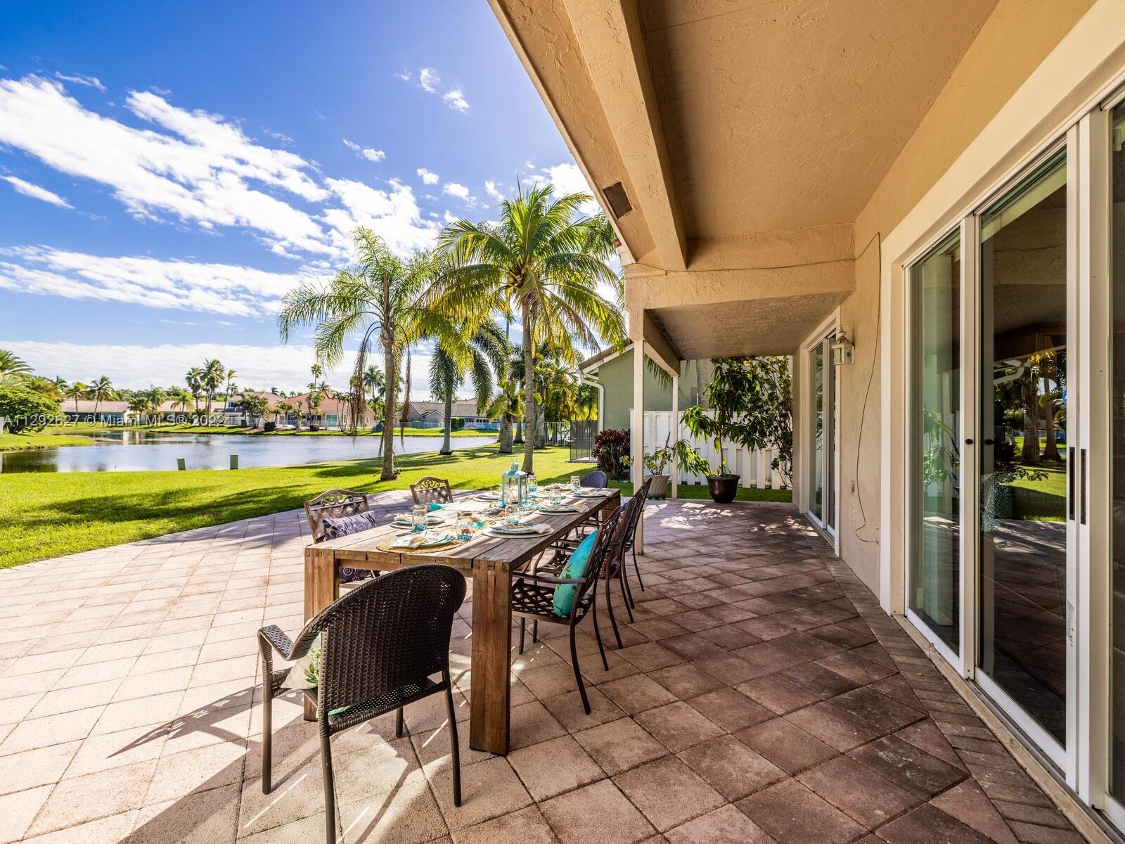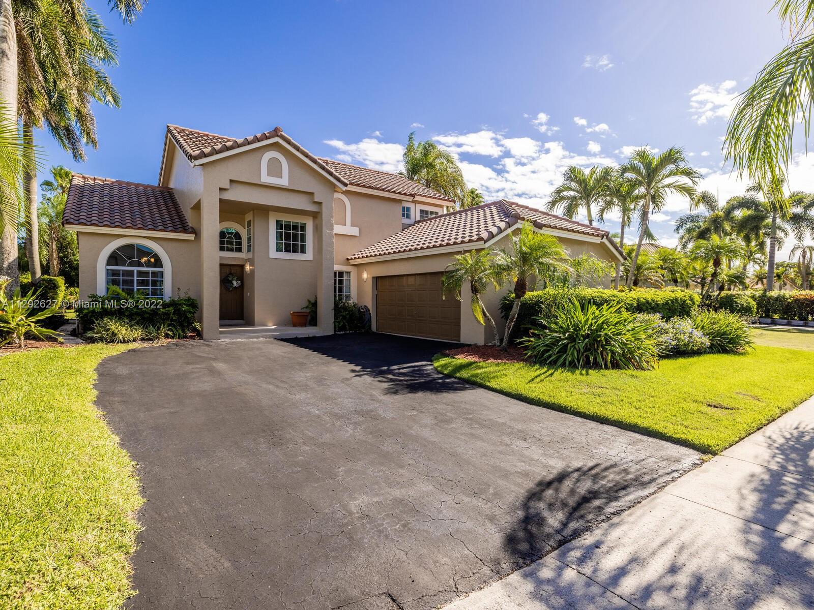 Elegant home sits on an oversized corner lot & cul-de-sac; it’s breathtaking from the minute you drive up. Step inside and you are greeted by soaring 20 ft. ceilings in the foyer & formal living room with an amazing view of the backyard and lake. 24” porcelain tile flooring leads to the gorgeously renovated kitchen, with granite & SS appliances and family room. 2 bedrooms & newly remodeled bath on 1st floor. Upstairs you will find the private master suite with a large bay window with French doors leading to an open balcony. Beautiful dark wood laminate flooring on the stairs and 2nd floor. The roof was replaced in 2009. Great location in the heart of Weston with top rated schools!