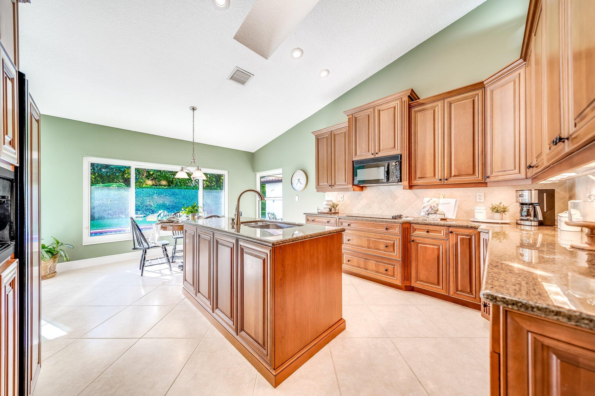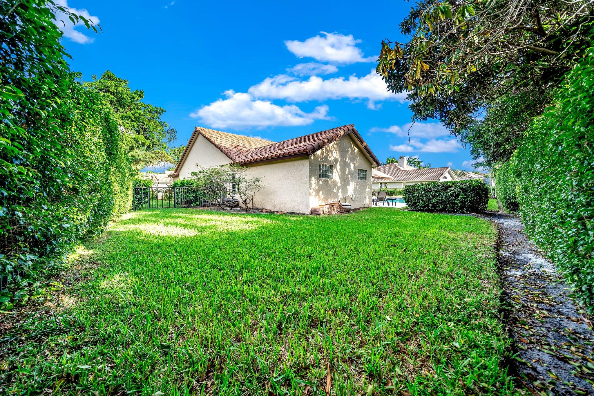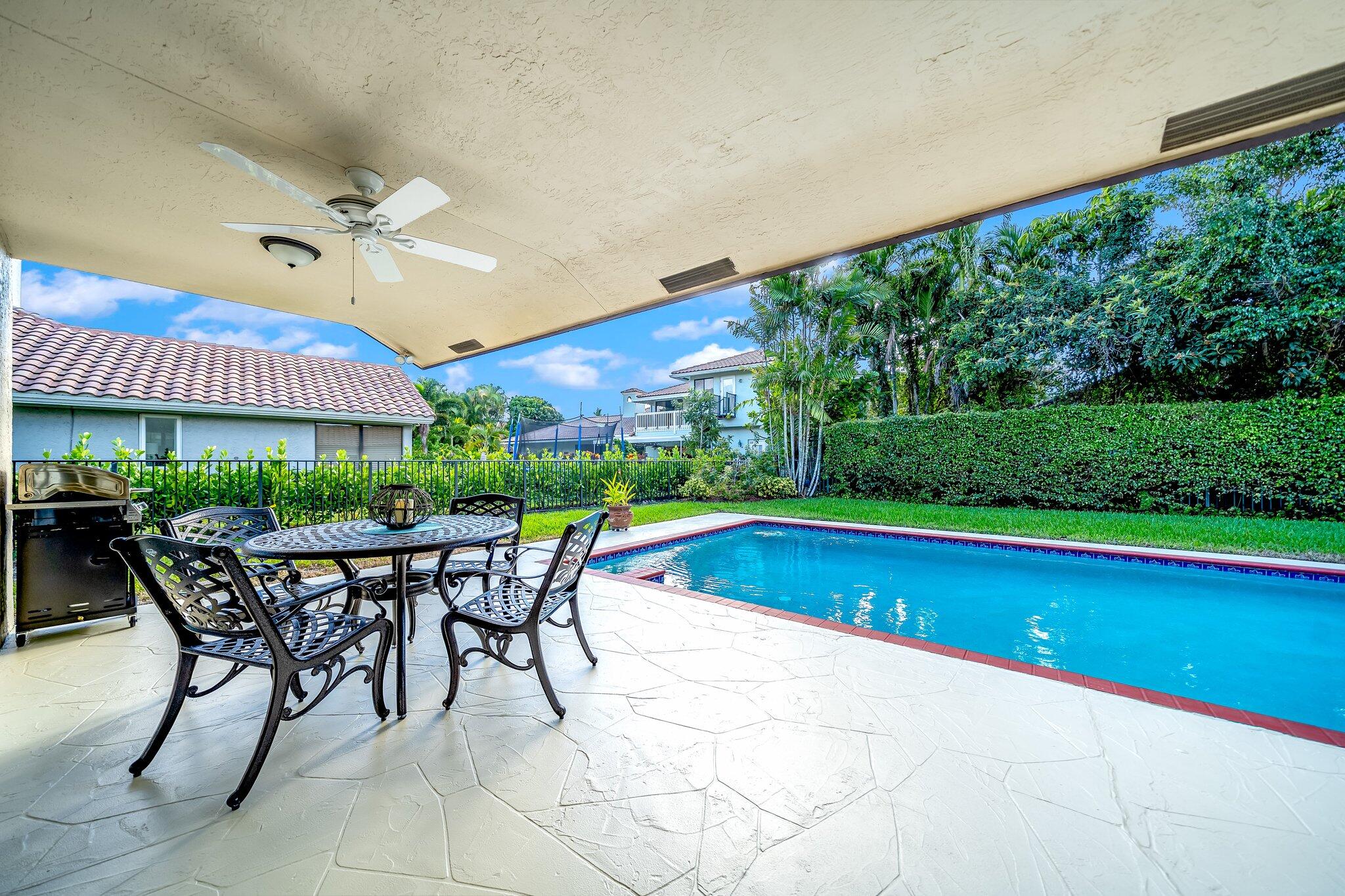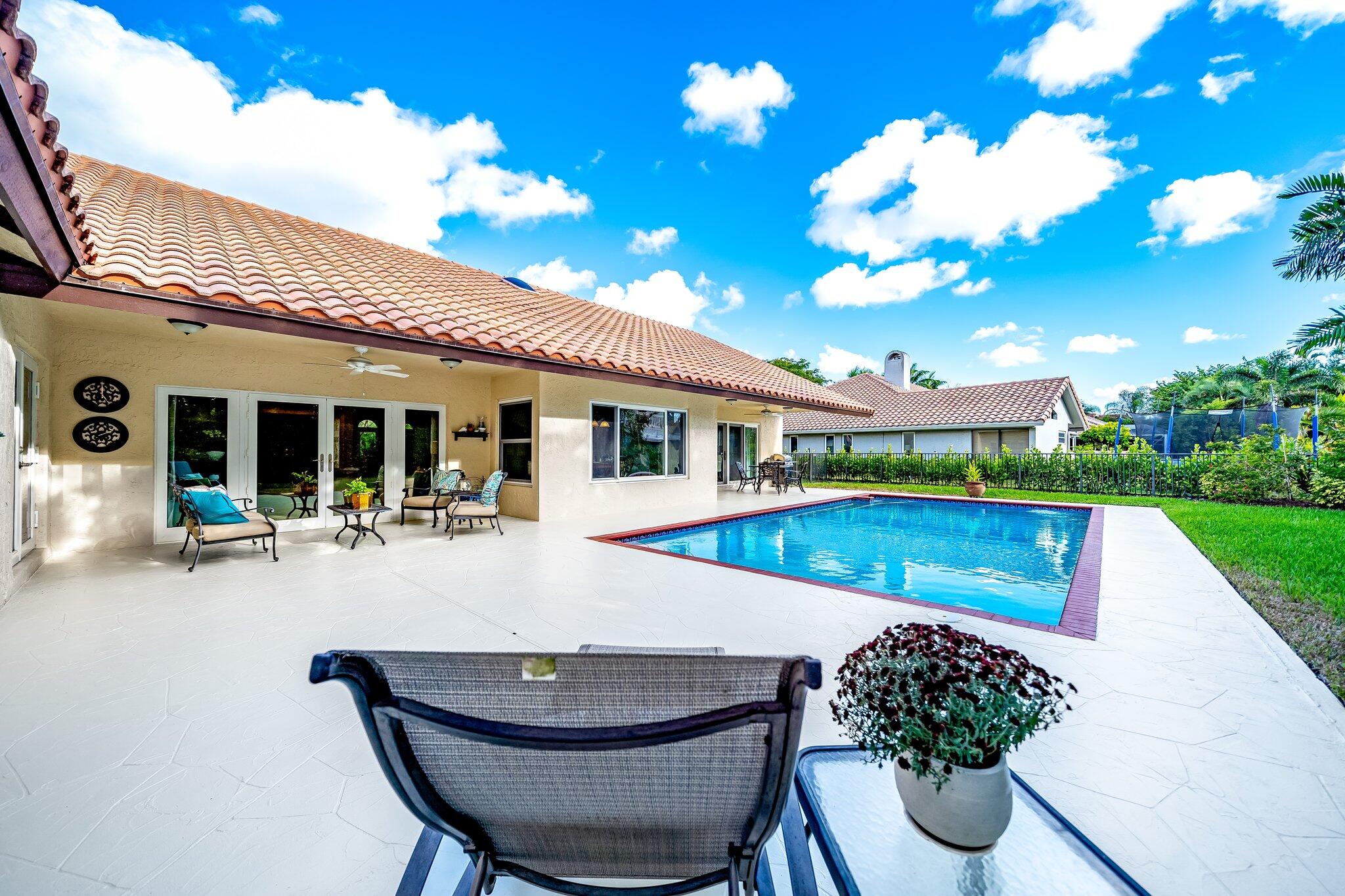 This 4 bedroom, 2 full and 2 half bathroom home is located on a beautiful, tree-lined street in the desirable New Floresta community in central Boca Raton. Enjoy a spacious one-level floor plan just under 3,000 living square feet with views of the large yard and pool. Ample cabinetry, tasteful granite counters throughout and a suite of GE appliances in the kitchen (including a double oven) are a chef's dream. Master suite with luxury touches including limestone flooring, soaker tub and immediate hot water system in the bathroom, plus custom closet installation with built-in chests and shelves. Elegant accents throughout the remaining beds and baths. Impact windows, sliders and patio doors. Close to Town Center Mall.